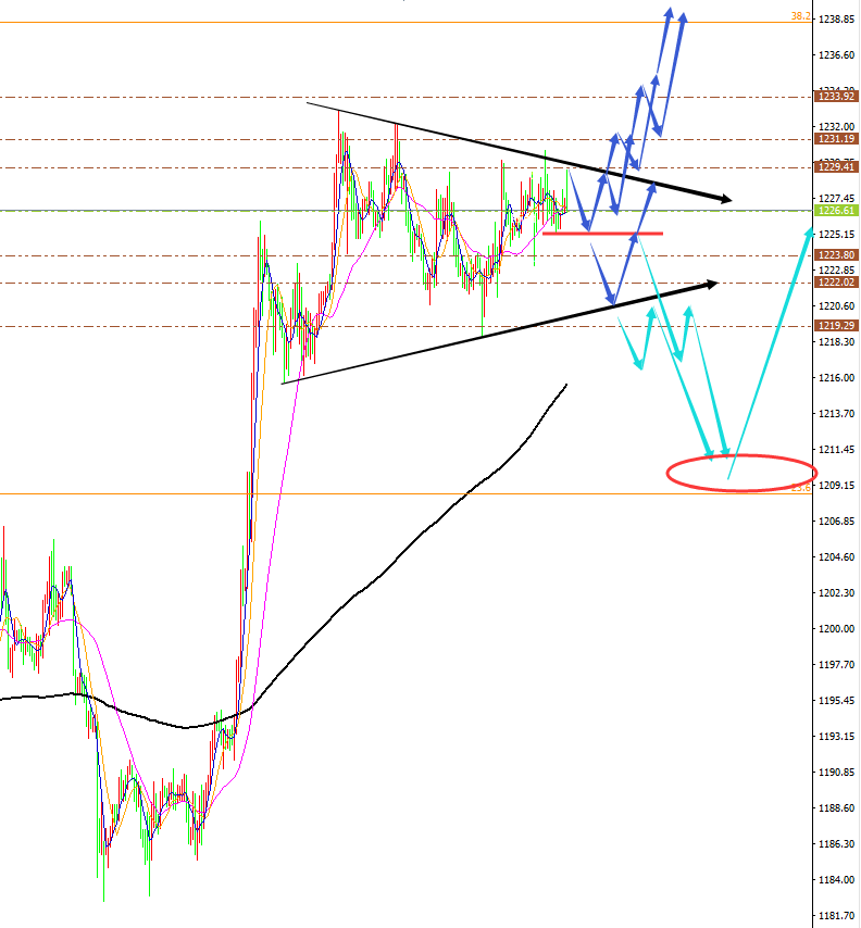 黄金 、原油分析策略: 阻力:1233-1238-1243。 支撑:1223-1218-1213。 小区间:1223—1238。 大区间:1218 —1248。 今日操作:低多、中多布局,短线高空辅助。 最新日线图10日、30日均线上移至1207、1200,10拐头向上刺破30日均线形成金叉继续保持开口向上运行,黄金1160/1163、1189、1215、1221、1224中线多单持有不变, 白银 14.3中多单持有不变! 纸白银 3.2-3.1元/克成本, 纸黄金 261- 262元/克做中线持有不变。 黄 金 日线继续保持连阳收线, 金价 走预期上涨,昨日黄金高开高走,