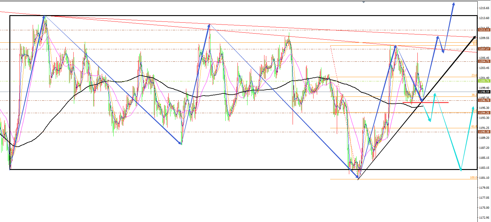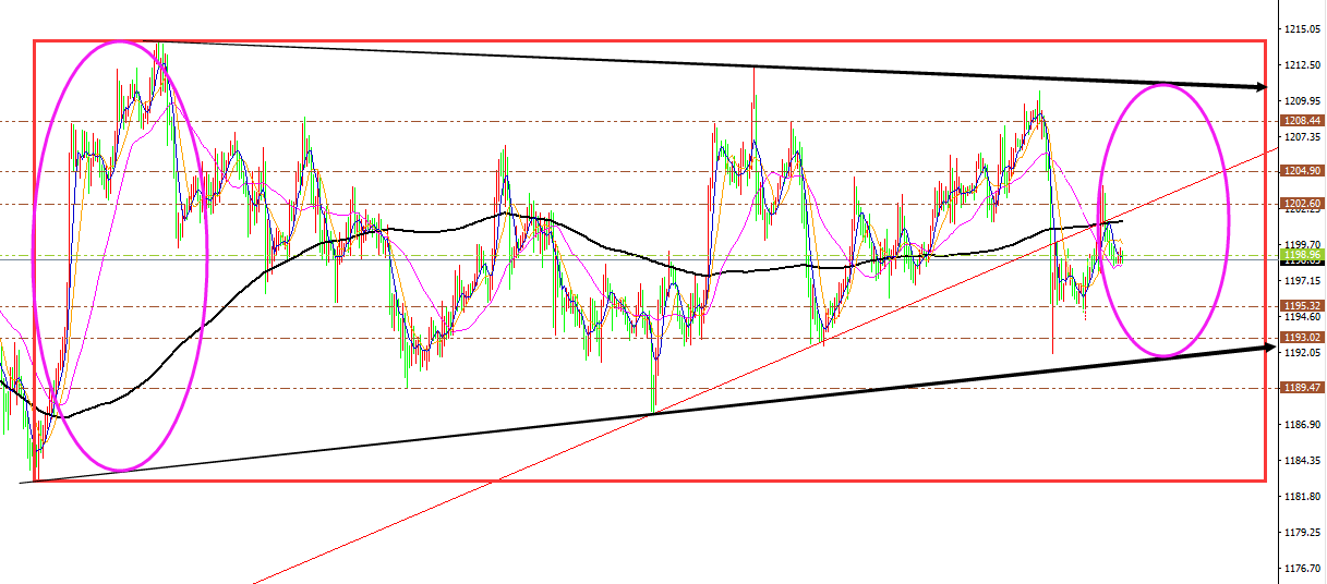 黄金 、原油分析策略: 阻力:1203-1208-1213。 支撑:1194-1188-1183。 小区间:1188—1208。 大区间:1183 —1213。 今日操作:低多、中多布局,短线高空辅助。 最新日线图10日、30日均线粘合后10日均线上破30日均线 金价 上涨1210高点受阻,目前10、30日均线走平价格位于1200、1196,日线纽约收盘价重回10日均线1200下放调整,日线短期保持偏空震荡,黄金1160/1163和1198的中线多单持有不变, 白银 14.0多单持有不变! 纸白银 3.3元/克成本, 纸黄金 263元/克做中线持有不变。 黄 金 昨日亚盘