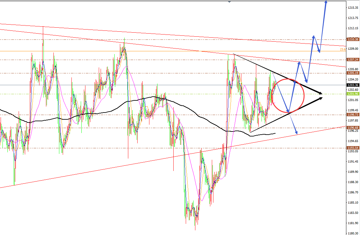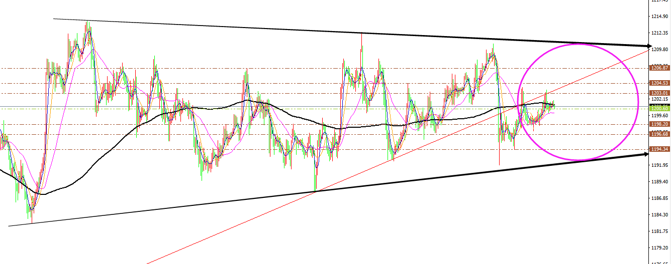 黄金 、原油分析策略: 阻力:1203-1208-1213。 支撑:1194-1188-1183。 小区间:1196—1206。 大区间:1190 —1210。 今日操作:低多、中多布局,短线高空辅助。 最新日线图10日、30日均线粘合后10日均线上破30日均线 金价 上涨1210高点受阻,目前10、30日均线走平价格位于1200、1197,日线纽约收盘价延续两日维持1200关口附近,日线图均线系统偏多,黄金1160/1163中线多单持有不变, 白银 14.0多单持有不变! 纸白银 3.3元/克成本, 纸黄金 263元/克做中线持有不变。 黄 金昨日依旧处于震荡,亚盘回撤