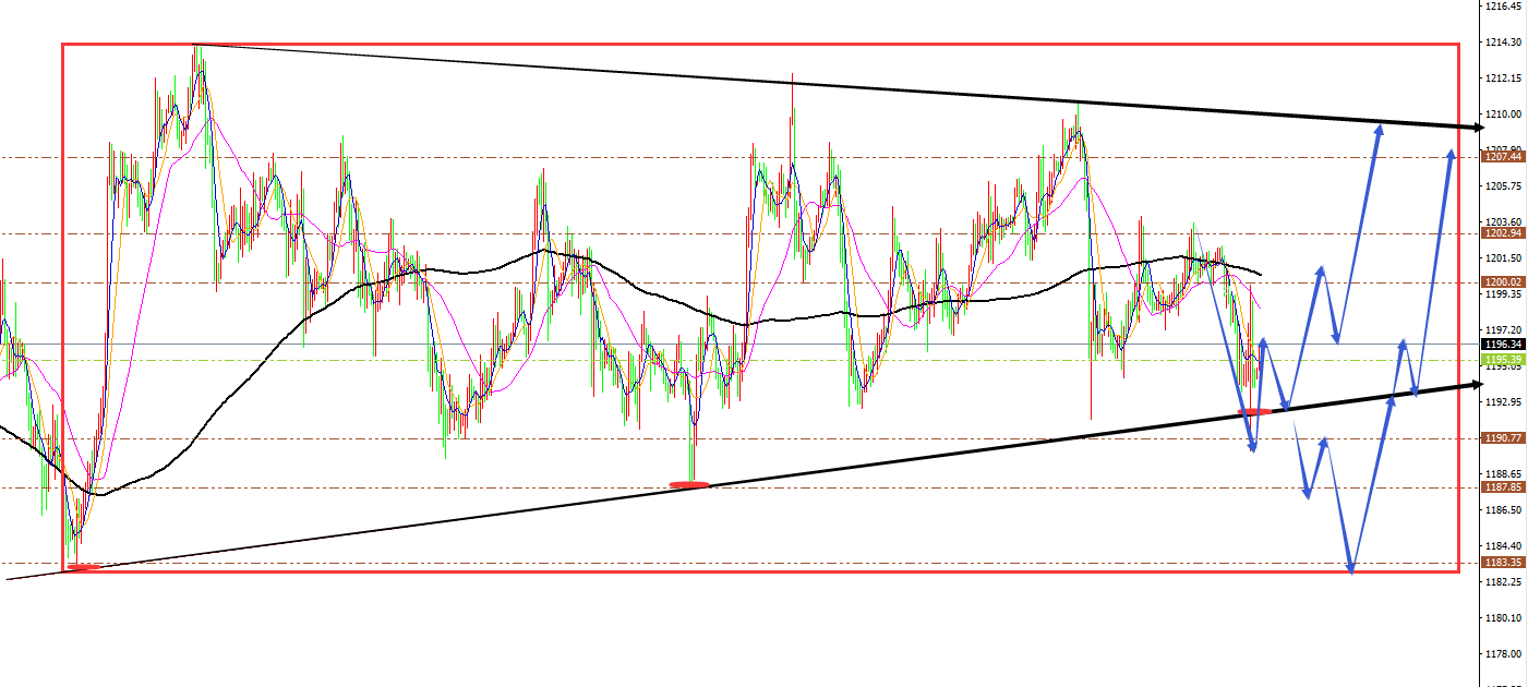 黄金 、原油分析策略: 阻力:1198-1203-1208。 支撑:1192-1188-1183。 小区间:1190—1200。 大区间:1183 —1213。 今日操作:低多、中多布局,短线高空辅助。 最新日线图10日、30日均线粘合后10日均线上破30日均线 金价 上涨1210高点受阻,目前10、30日均线走平后再次收口于1199-1197价位,昨日加息落地,黄金探底回升,价格止跌1190关口。后市金价能否反转继续筑底形成上破,关键在周线图1200位置的纽约收盘能否企稳,黄金1160/1163中线多单持有不变, 白银 14.0多单持有不变! 纸白银 3.3元/克成本, 纸黄金