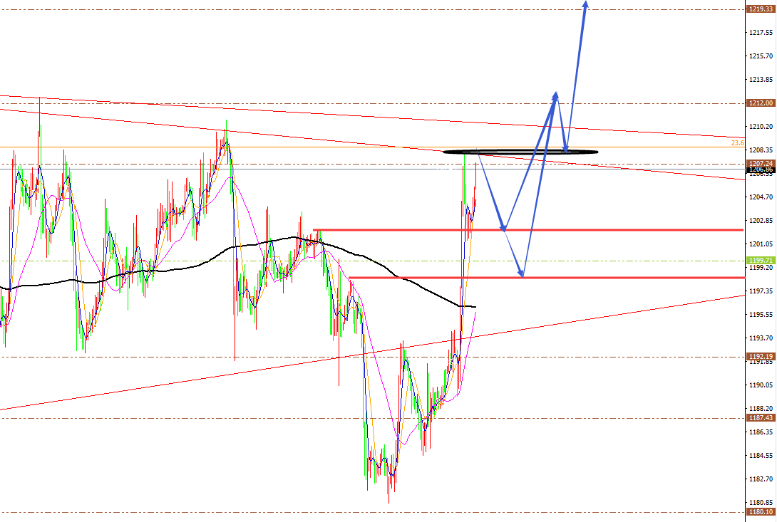 黄金 、原油分析策略: 阻力:1205-1208-1213。 支撑:1195-1189-1183。 小区间:1195—1205。 大区间:1190 —1210。 今日操作:低多、中多布局,短线高空辅助。 最新日线图10日、30日均线价格位于1195、1198,10、30日均线走平,纽约收盘价重新站上119830日均线上方,5日均线拐头向上短周期个均线指标向上扩散,笔者预期后市 金价 有望突破1213上看1233、1245及1266的一线高点,黄金1160/1163、1189中线多单持有不变, 白银 14.3-14.4中多单持有不变! 纸白银 3.2-3.1元/克成本, 纸黄金 2