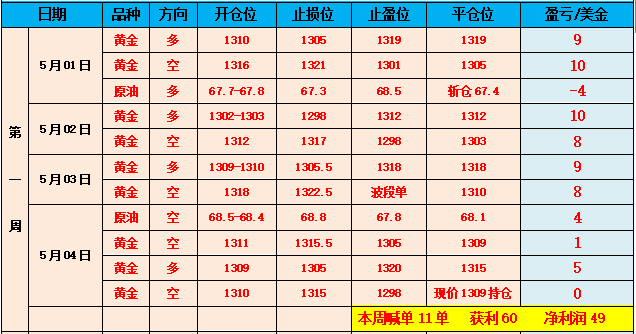 本周总计喊11单,止损0单,斩仓1单,获利10单。(斩获60美金,净利润49美金) 以上分析观点出自石扬本人,分析策略均已盘中喊单为准。转载请注明文章出处。博弈有道、投资需谨慎! 下载财视APP,搜索石扬。即可订阅获取直播间建议!欢迎订阅本人财经专家系统,同步更新每时段黄金、原油交易策略!欢迎订阅http://cs.cnfol.
