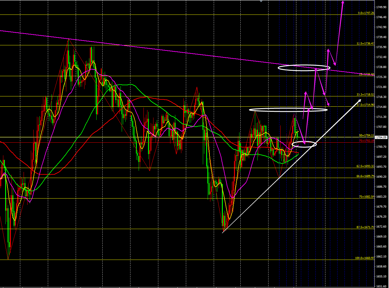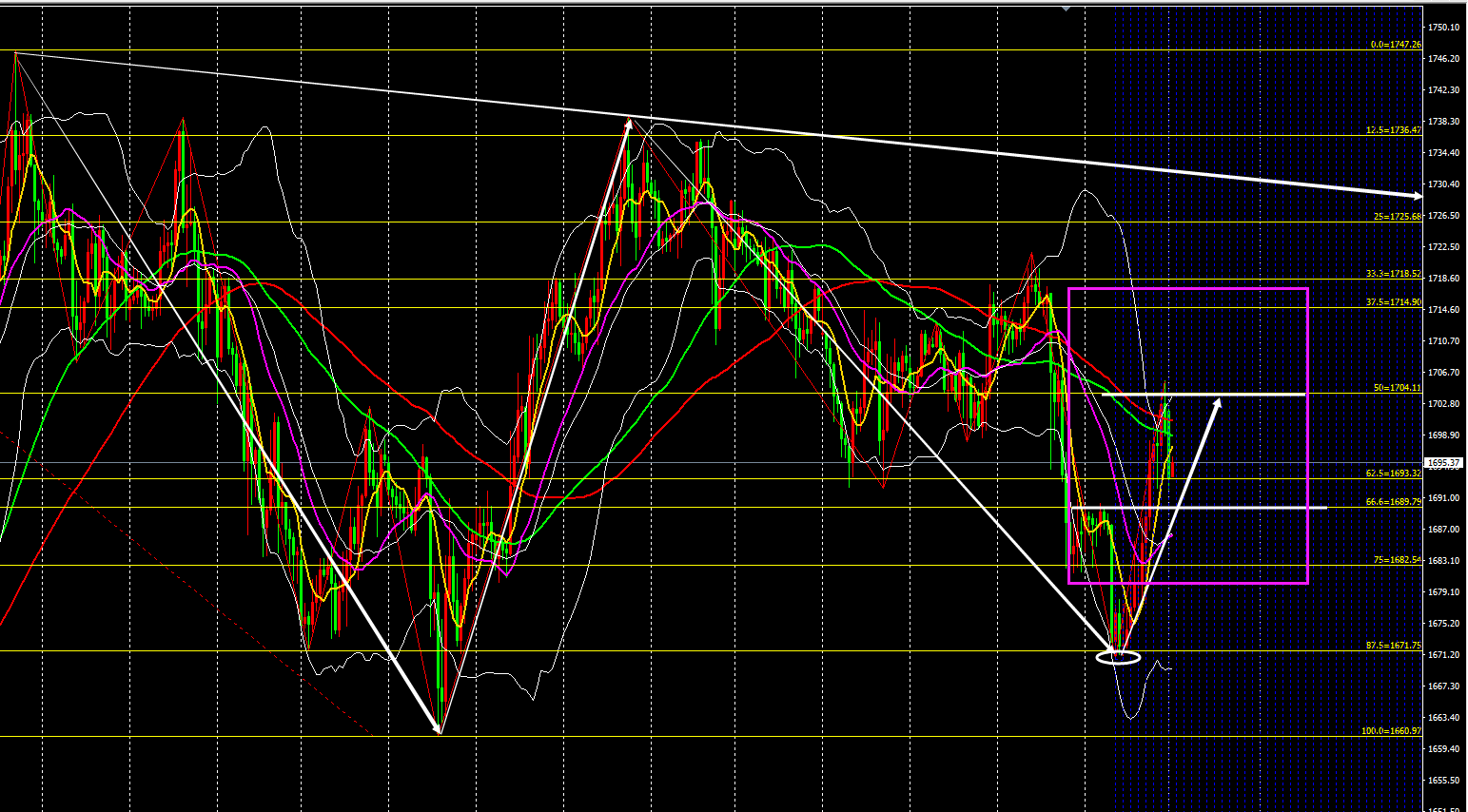 黄金分析策略: 方向:多 目标:1728/1754 阻力:1718/1728/1754 支撑:1693/1678/1660 拐点:1728 多空分水岭:1700 今日操作:低多为主,高空辅助 交易绩效有时宛如云霄飞车,时而攀高,时而剧降,总是夹杂着欢乐与哀愁。一个不留神,市场便可能瓦解投资人心理,蹂躏投资人灵魂。只要进场交易,这类的经验便无可避免,但是投资人尽可学会如何应付这些情况,甚至学习从中获利。规则必须严格执行,否则就是空谈。严格执行自己制定的规则,完全地自律,是艰难的一环。执行之难,因为人,是理性和非理性的综合体,非理性的一面,总是自觉或不自觉地企图来破坏我们理性的思维。我