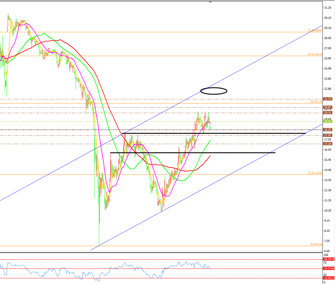 原油分析策略: 方向:多 目标:中多 阻力:21.3/22.3/24.3 支撑:18.0/16.6/15.5 拐点:22.3 多空分水岭:18.0 今日操作:中线低多为主,短线高空辅助 交易绩效有时宛如云霄飞车,时而攀高,时而剧降,总是夹杂着欢乐与哀愁。一个不留神,市场便可能瓦解投资人心理,蹂躏投资人灵魂。只要进场交易,这类的经验便无可避免,但是投资人尽可学会如何应付这些情况,甚至学习从中获利。规则必须严格执行,否则就是空谈。严格执行自己制定的规则,完全地自律,是艰难的一环。执行之难,因为人,是理性和非理性的综合体,非理性的一面,总是自觉或不自觉地企图来破坏我