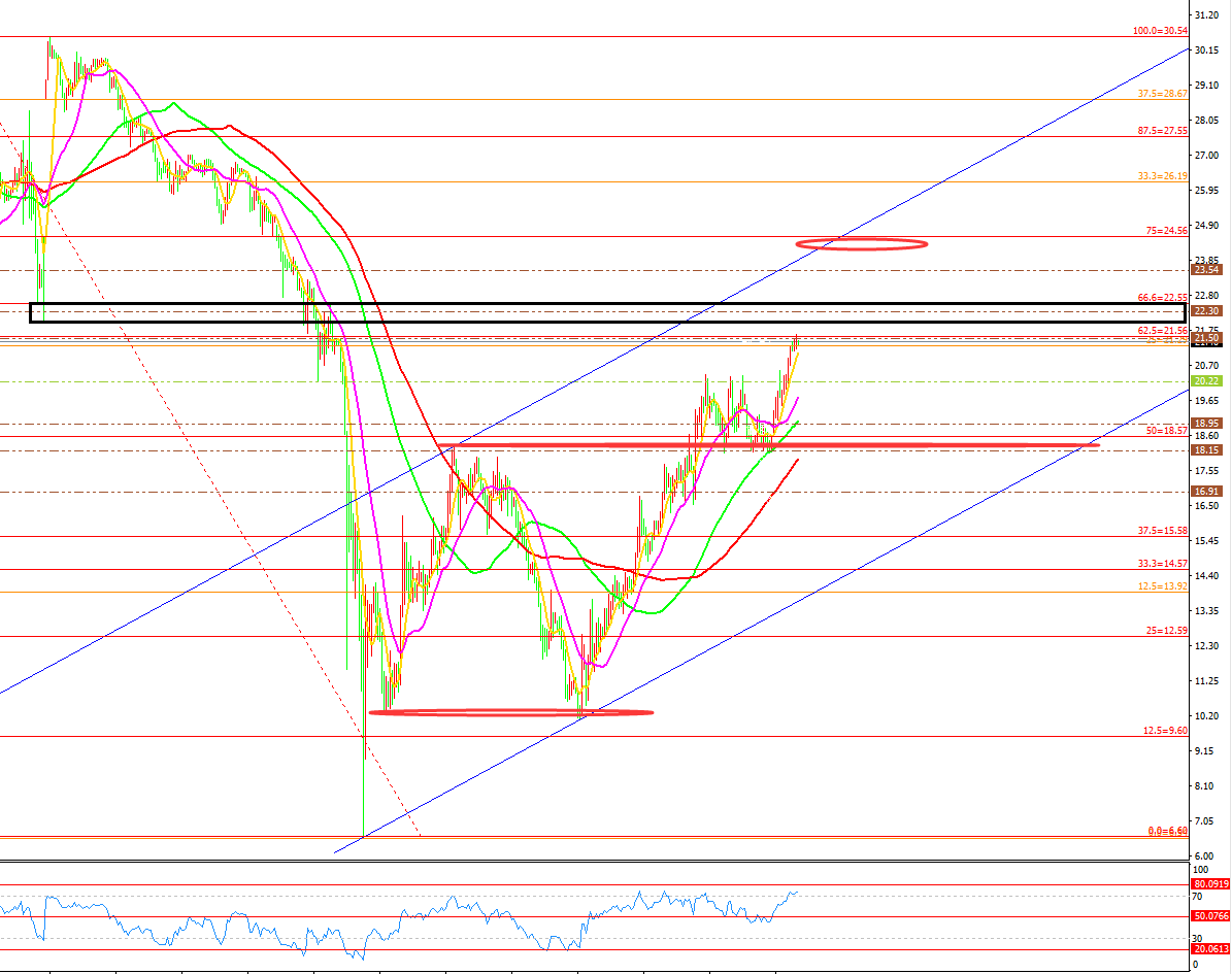 原油分析策略: 方向:多 目标:中多 阻力:22.3/24.3/27.0 支撑:20.0/18.3/17.0 拐点:22.3 多空分水岭:20.0 今日操作:中线低多为主,短线高空辅助 交易绩效有时宛如云霄飞车,时而攀高,时而剧降,总是夹杂着欢乐与哀愁。一个不留神,市场便可能瓦解投资人心理,蹂躏投资人灵魂。只要进场交易,这类的经验便无可避免,但是投资人尽可学会如何应付这些情况,甚至学习从中获利。规则必须严格执行,否则就是空谈。严格执行自己制定的规则,完全地自律,是艰难的一环。执行之难,因为人,是理性和非理性的综合体,非理性的一面,总是自觉或不自觉地企图来破坏我