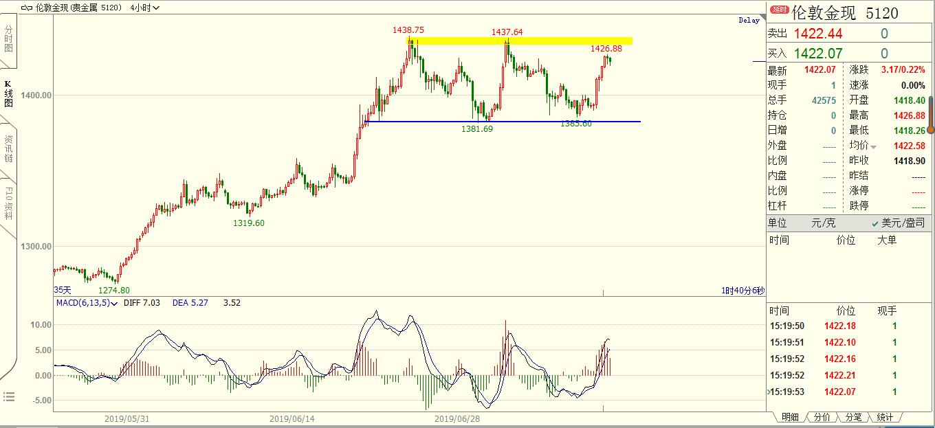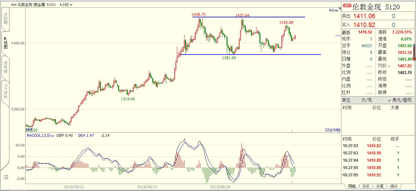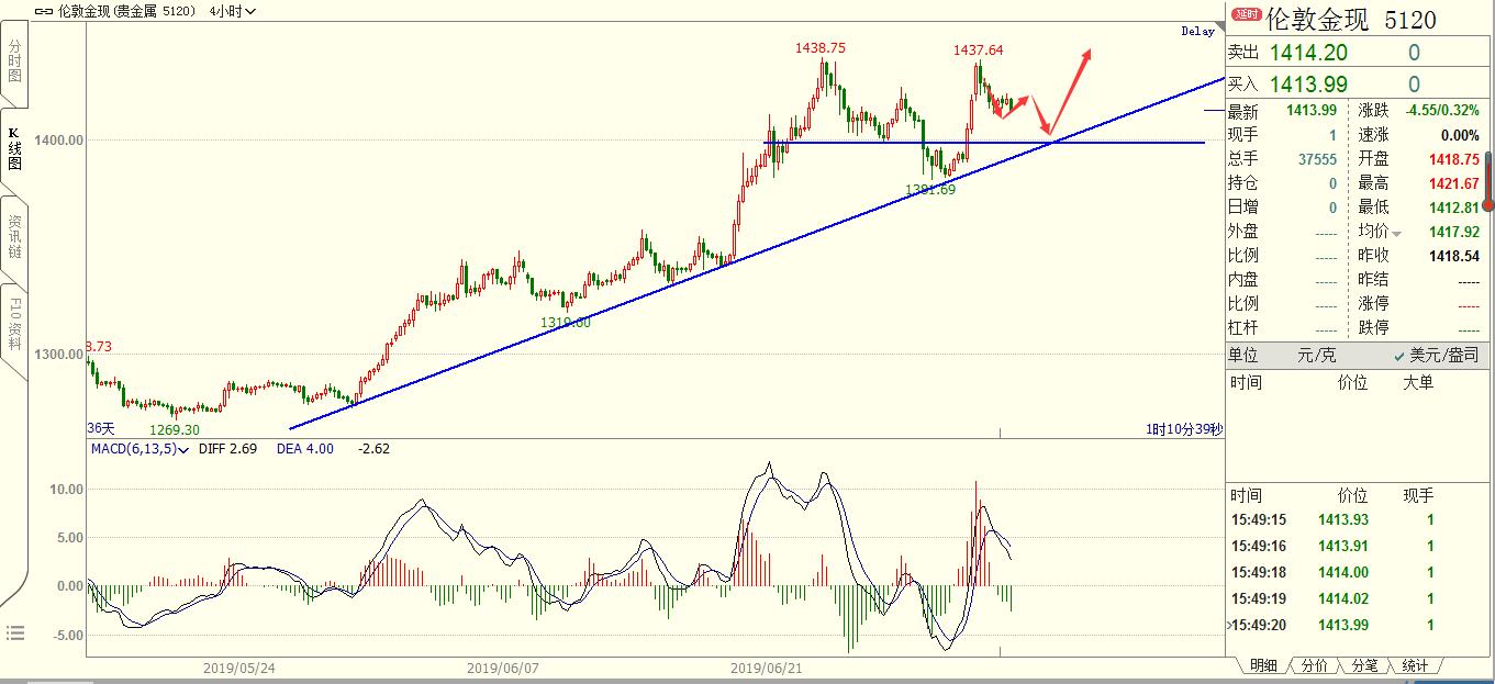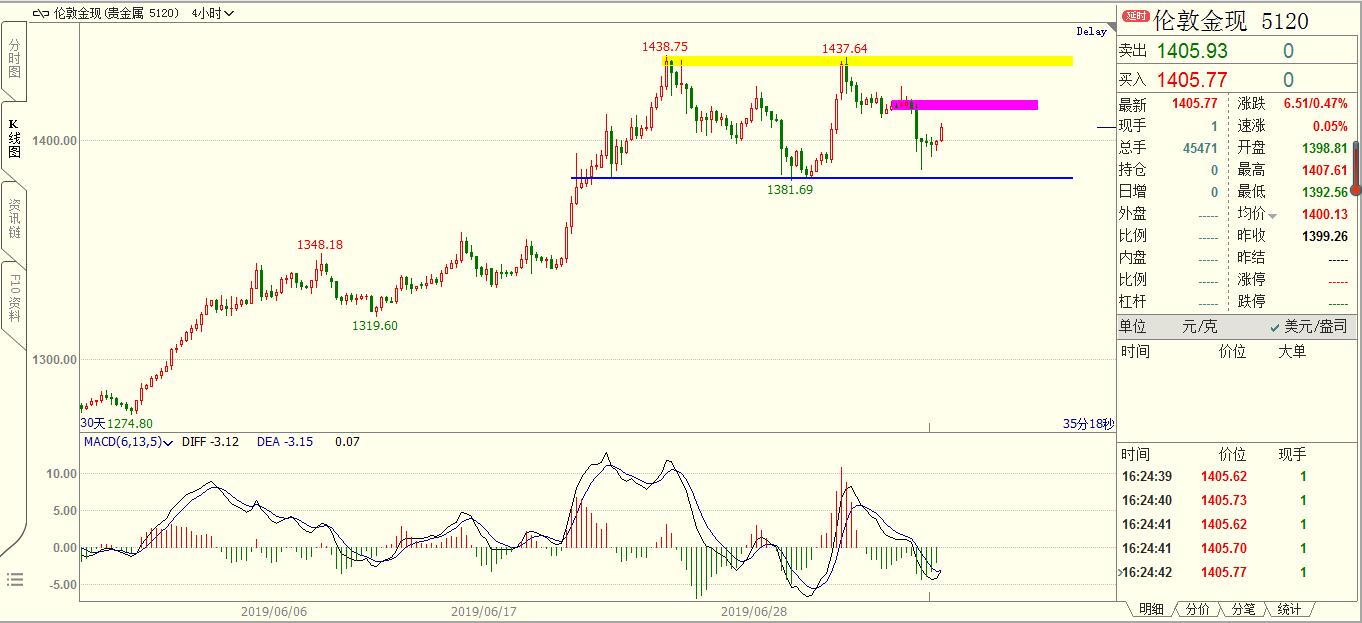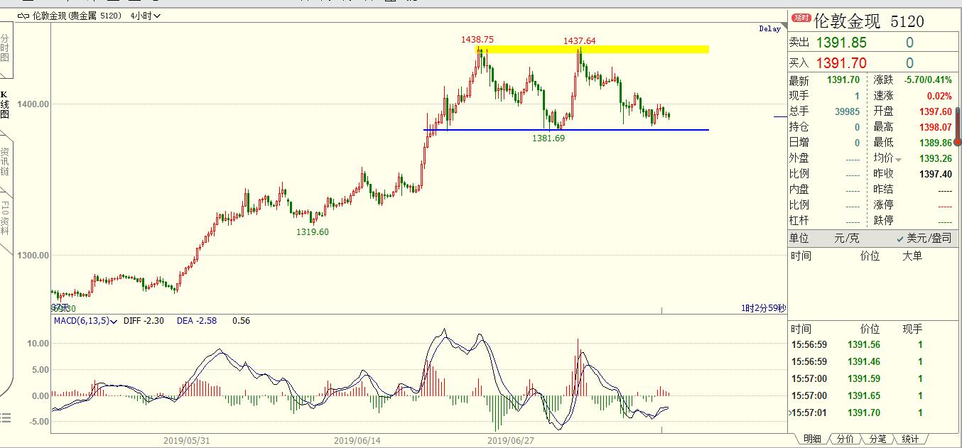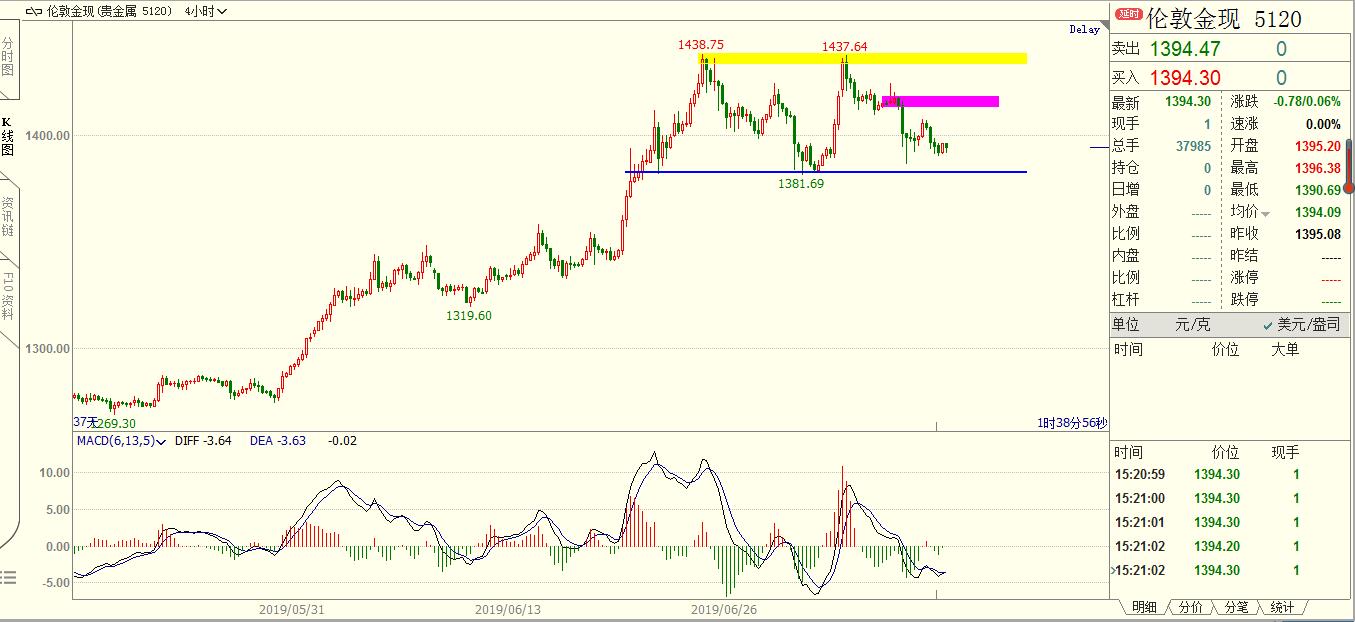 在长线交易中,除了知识以外,耐心比任何其它因素更为重要。实际上,耐心和知识是相辅相成的,那些想通过投机获得成功的人应该学会一个简单的道理:在你买入或是卖出之前,你必须仔细研究,确认是否是你进场的最好时机。只有这样,你才能保证你的头寸是正确的头寸。 约90%交易者的财富流向10%的交易者,短线交易者的财富流向长线交易者;追求偶尔暴富交易者的财富流向追求长期微利的交易者;急噪交易者的财富流向耐心的交易者;用手赚钱的交易者的财富流向用屁股赚钱的交易者。 黄金,非农之后弱势震荡了三个交易日,价格逐渐靠近4H颈线1380的位置。明天凌晨有美联储货币政