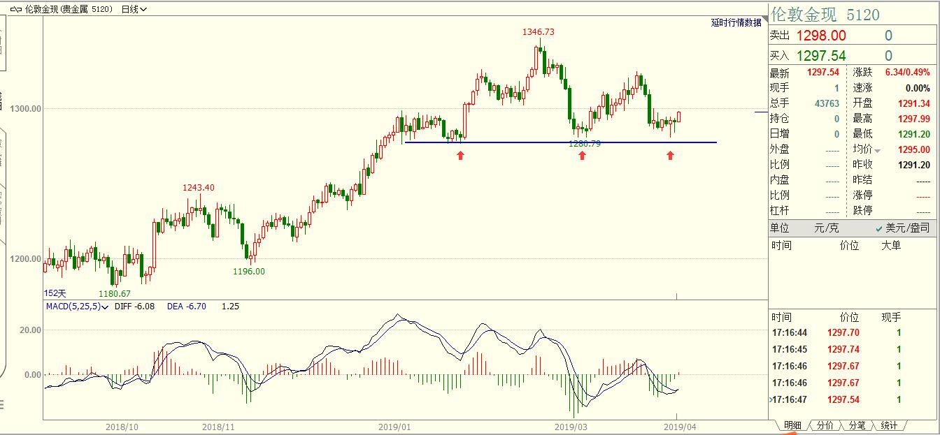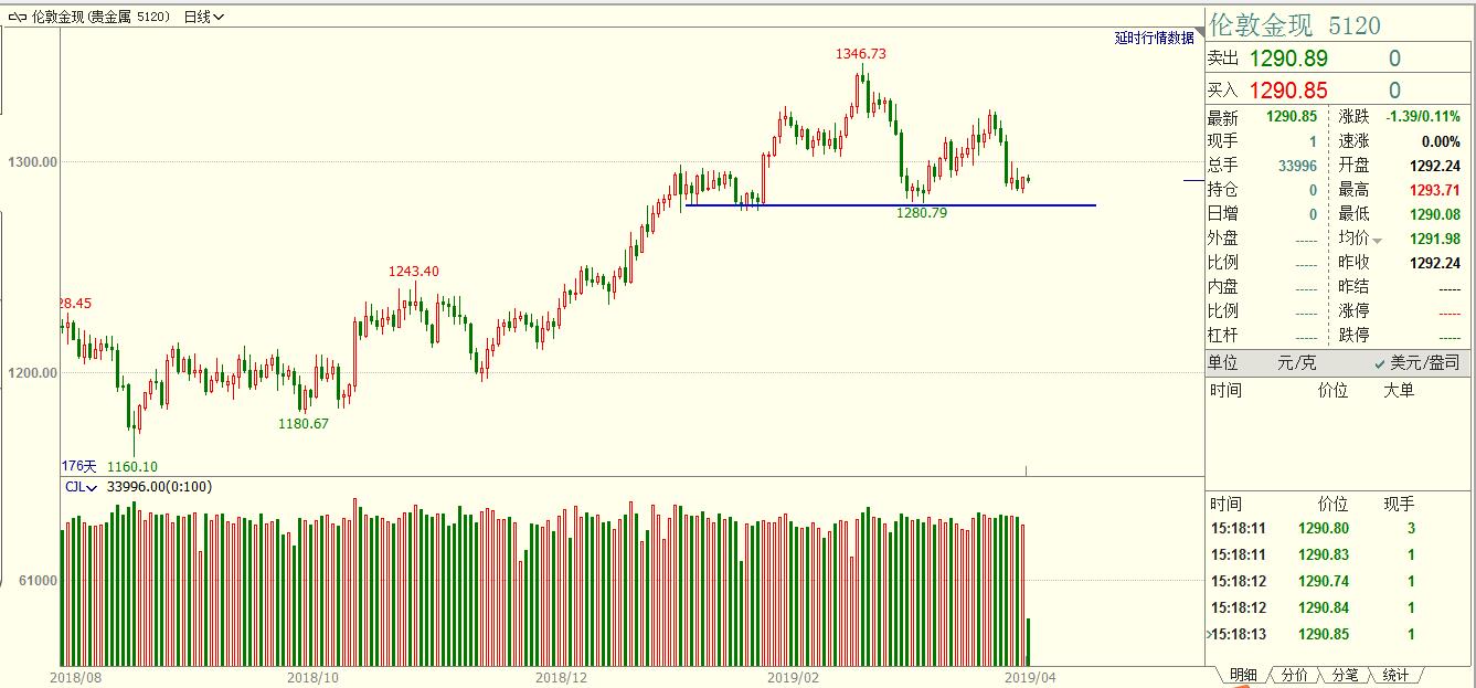 交易人最大的敌人是自己-贪婪、急燥、失控的情绪、没有防备心、过度自我等等,人的本性是很可怕的,那么就需要常常静下心来好好反思,寻找自身的优缺点,若贪婪那么就见好就收,若急躁不妨放下手里的事,等自己慢慢平复再去接着做,要学会调整心态,急是急不来的,沉着冷静方是处事之道。 黄金 :隔夜黄金探底回升,最低触及1280后日内V型反转,日线级别的震荡区间1280-1345仍然没有冲破。图表上,链接最近的几个低点,可以很清晰的看到,1280一线是多头的终极防守线。隔夜在这个位置再次得到支撑,1280或成阶段性低点。 今晚8点半有每月一次的非农就业数据,笔者不会