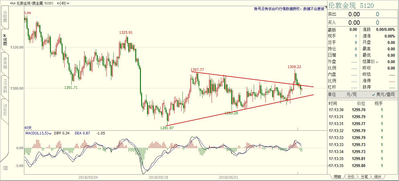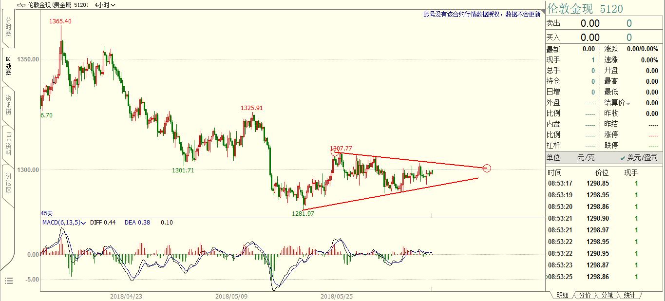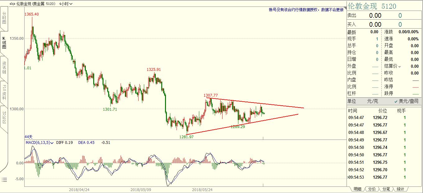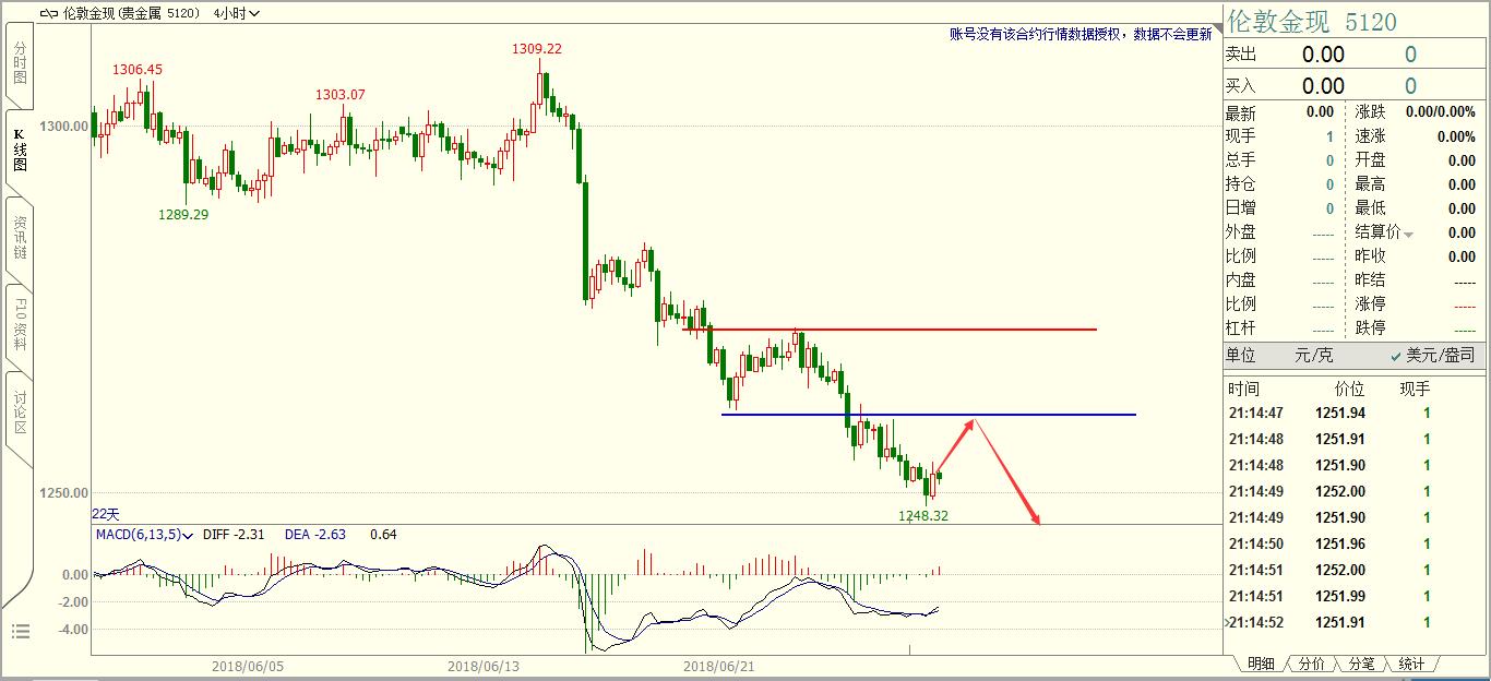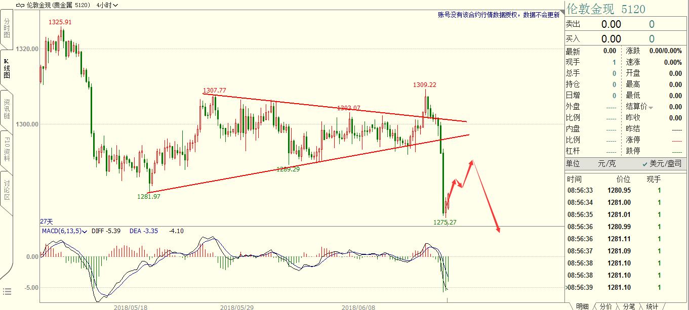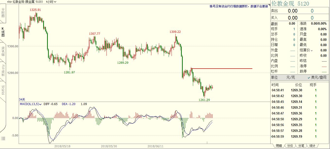 在赢家的眼里牛市和熊市并不重要,这就象一个以土地为生的农民,他不在乎丰收和歉收,因为无论是丰收还是歉收他都要春耕秋收,这是他的宿命和天职。 上周黄金借助美联储货币政策纪要的消息面进行了充分的诱多,周五的大跌显示了真正的趋势方向。4H图表上,诱多K线非常明显,空头力量很强,周五大跌时一点反弹都没有,不给多头任何逃命的机会。周五收盘暴跌1.73%,和5月15日的K线暴跌幅度一模一样。 做交易重要的不是猜对了方向,而是方向明确之后的操作机会。黄金空头趋势明显,本周伺机做空。技术上,待黄金反弹1290附近遇阻有效后进场交易,空头趋势不要猜底。世界杯之前恐怕都是