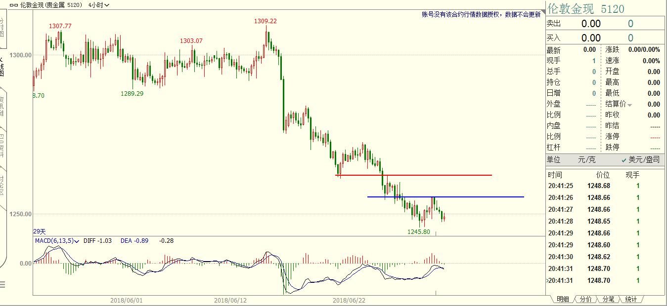 抱怨是一件最没意义的事情。如果实在难以忍受周围的环境,那就暗自努力练好本领,然后跳出那个圈子。 黄金,空头趋势。周线已经三根大阴线,日线级别极弱下跌,这一波从1310目前最低跌到了1245.8,跌幅64.2美金。技术上,黄金仍然是空头趋势,空头趋势中绝不做多,这是纪律。什么时候转多了,中线机会也就来了。 本周三美国独立日假期,将提前于凌晨1点收盘,即美盘交易可能会比较清淡,周五大非农,数据行情。消息面上可能还会蹦出中美贸易战,其他没有可重点关注的内容。大非农能不能使黄金转多不去预测,也不抄底。不转多可能还会下跌,如果转入多头趋势,下周将