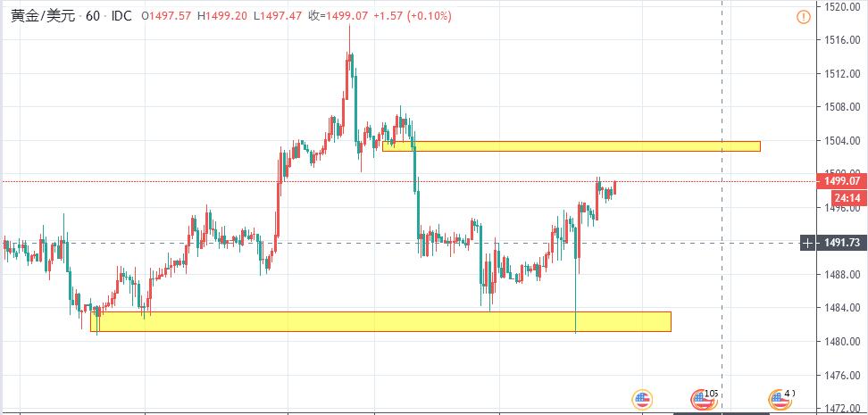 你如果还是不能彻底地放过那些不属于你交易系统的机会,还是用侥幸寻找着成功,那么你将永远找不到成功。 而只有彻底的放弃,彻底的遵守,彻底的执行,才是你走向成功的唯一选择! 周四凌晨,美联储继续降息25个基点,黄金先跌后涨,继续在1480上方震荡,短期看,黄金依然不具备单边的能力,跌的不够深,涨的不够高,后面继续震荡的概率偏大。 昨天建议在震荡区间的下边界1480附近可参与短线多单,目标1500今天也到了。图表上看,价格又来到了1503的压力区,周四继续做多的盈利空间并不大,明天有非农数据,周四观望一天,观察在1503附近的反应。 原油:周二E