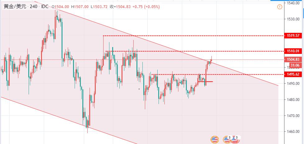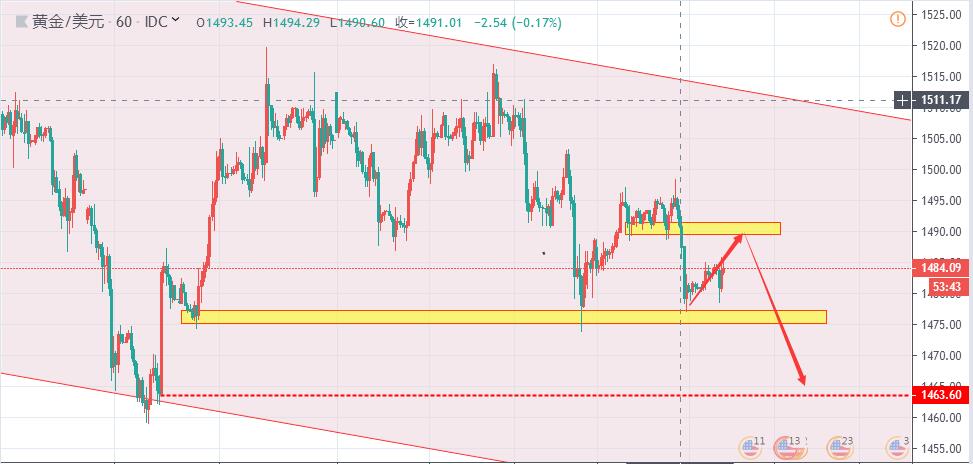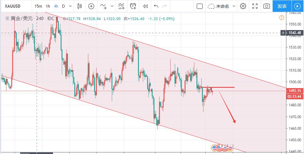 你如果还是不能彻底地放过那些不属于你交易系统的机会,还是用侥幸寻找着成功,那么你将永远找不到成功。 而只有彻底的放弃,彻底的遵守,彻底的执行,才是你走向成功的唯一选择! 黄金:今天有ADP,周四凌晨有万众瞩目的美联储利率决议,周五还有非农,三个比较重要的数据对黄金的影响都比较大,届时黄金的波动也很无常,建议关注数据后黄金的机会。 黄金周线属于多头趋势的回调期,日线属于震荡市,这个震荡市也快结束了,震荡结束后应该就是单边了。目前,小时图上黄金震荡的区间就在1480-1520之间,周二在震荡区间的下边界迎来买盘,如果仅从图表上看,1480