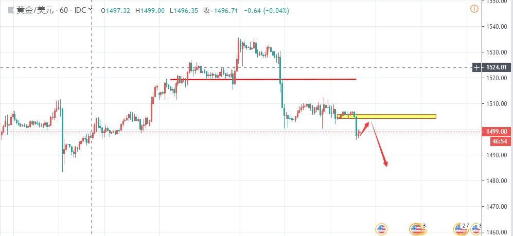 你如果还是不能彻底地放过那些不属于你交易系统的机会,还是用侥幸寻找着成功,那么你将永远找不到成功。 而只有彻底的放弃,彻底的遵守,彻底的执行,才是你走向成功的唯一选择! 黄金,周四反弹没有达到预期的1520附近的做空点位,反弹相对比较弱势。1500整数关口三次遇阻,今天欧盘直接跌破,下方回调的空间打开。 日线上,黄金空方炮形态,周五如果有交易意愿可以逢高做空,下方短线上可以到1480附近。后面就需要关注1480的支撑,如果顺利跌破,日线上就形成了空头趋势,回调空间会进一步加大。白银更弱,欧盘就开始跳水了。 原油,周四刷新新低,但离缺口还有一点点距离,还是有点小纠结。布伦特油