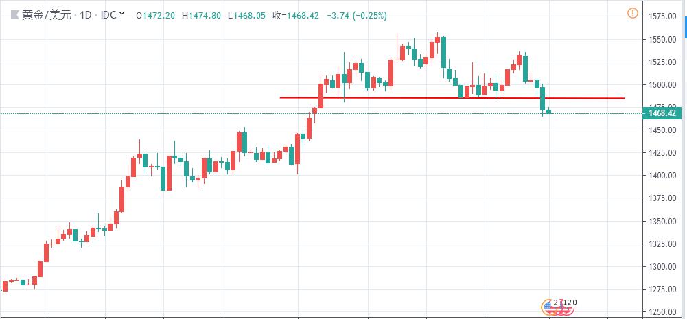 你如果还是不能彻底地放过那些不属于你交易系统的机会,还是用侥幸寻找着成功,那么你将永远找不到成功。 而只有彻底的放弃,彻底的遵守,彻底的执行,才是你走向成功的唯一选择! 周三晚间公布的ADP就业数据不及预期,利多黄金,利空美股。再加上周二的制造业指数数据太差,两个数据双重打击,美股连续两个交易日大跌,引发避险资金涌入黄金。 周三收盘价在日线颈线1480之上,确认黄金前面的跌破是假跌破,黄金短暂的空头结束了,要继续上涨去洗空头了。昨日欧盘时段,在金价小时图第二次站上1480之后做了多单,止损可以上提到保本继续看目标。周四关注1490附