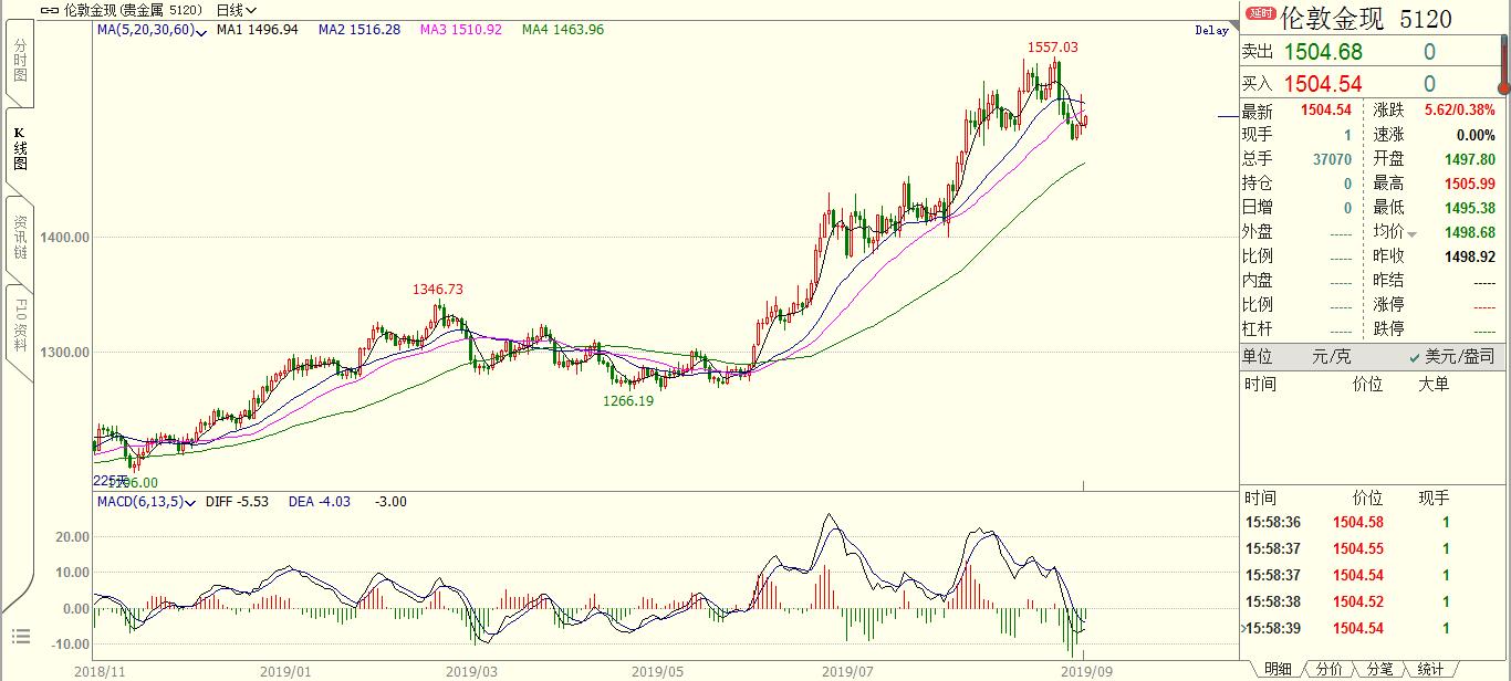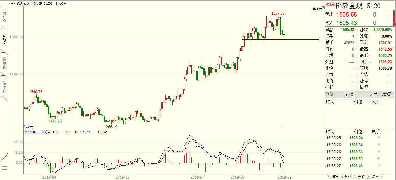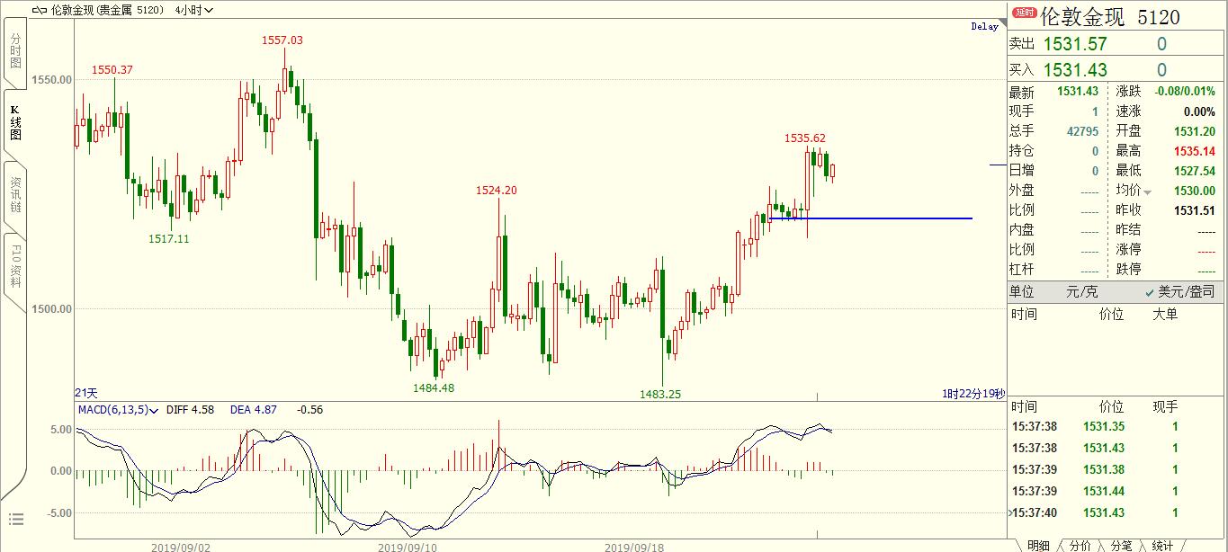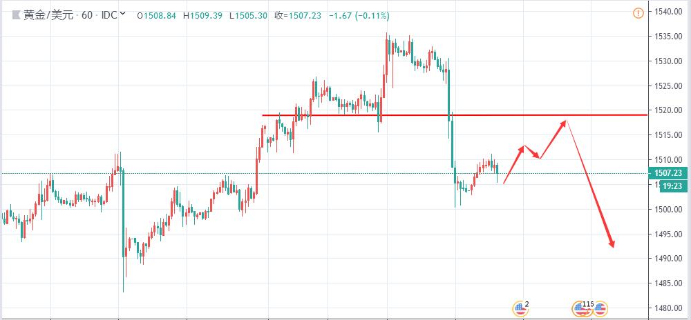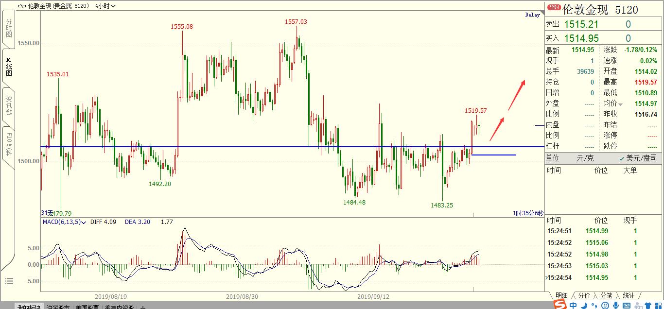 你如果还是不能彻底地放过那些不属于你交易系统的机会,还是用侥幸寻找着成功,那么你将永远找不到成功。 而只有彻底的放弃,彻底的遵守,彻底的执行,才是你走向成功的唯一选择! 黄金:周四建议逢低做多,目标1510-1513很快就到了,而且远超目标值,但白银的涨幅就比较失望了,18.6没有到,反而比黄金先行跳水。 周四晚间19:45,欧央行宣布存款利率从-0.4%下调10个基点至-0.5%,同时重启量化宽松政策。欧央行降息,金银携手上涨,但美盘没有守住涨幅,预示着黄金多头趋势的回调还没有结束。昨天最高打到了1524,距离非农的高