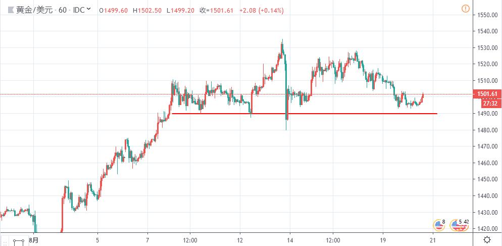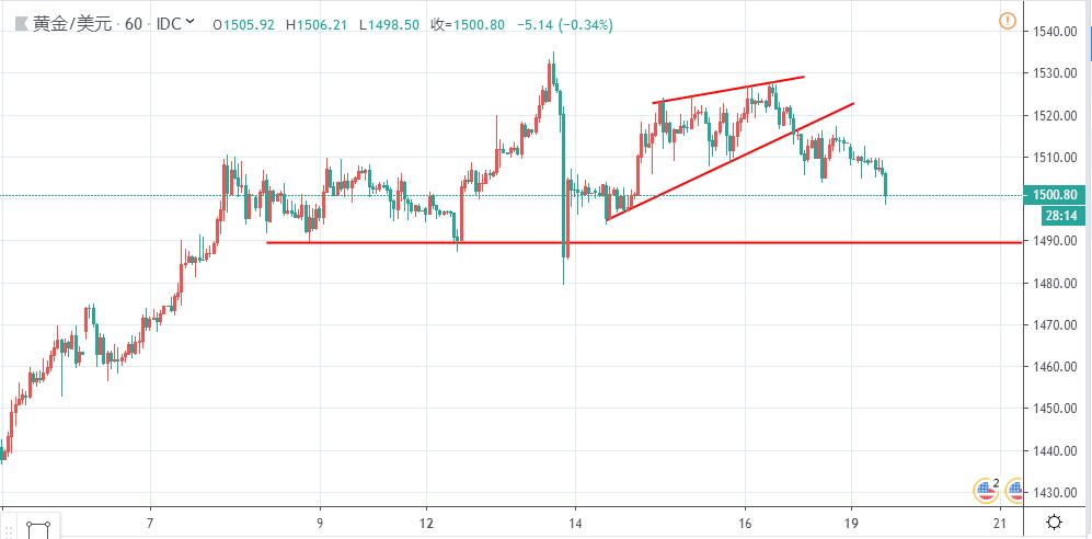 幸运往往都会降临在那些积极乐观的人身上,话语权一般只会掌握在那些有自己的实力、有自己的人脉而且足够优秀的人手上。世上没有什么比失去你拥有的一切更能教会你什么是不该做的了,如果学会了不做某些事而避免亏钱,那么你已学会了怎样赚钱。 本周没有特别多的数据影响市场走势,黄金外汇比较大的影响是周四凌晨2点的美联储货币政策会议纪要,侧重于美联储对于目前美国经济形势的观点看法,以预判下一次美联储利率决议的政策方向。 黄金:多头趋势的回调市,上周五美盘的高点在1515附近,本周前半周预计会以周五凌晨高点为压力继续回调,回调的点关注颈线1490,回调企稳可关