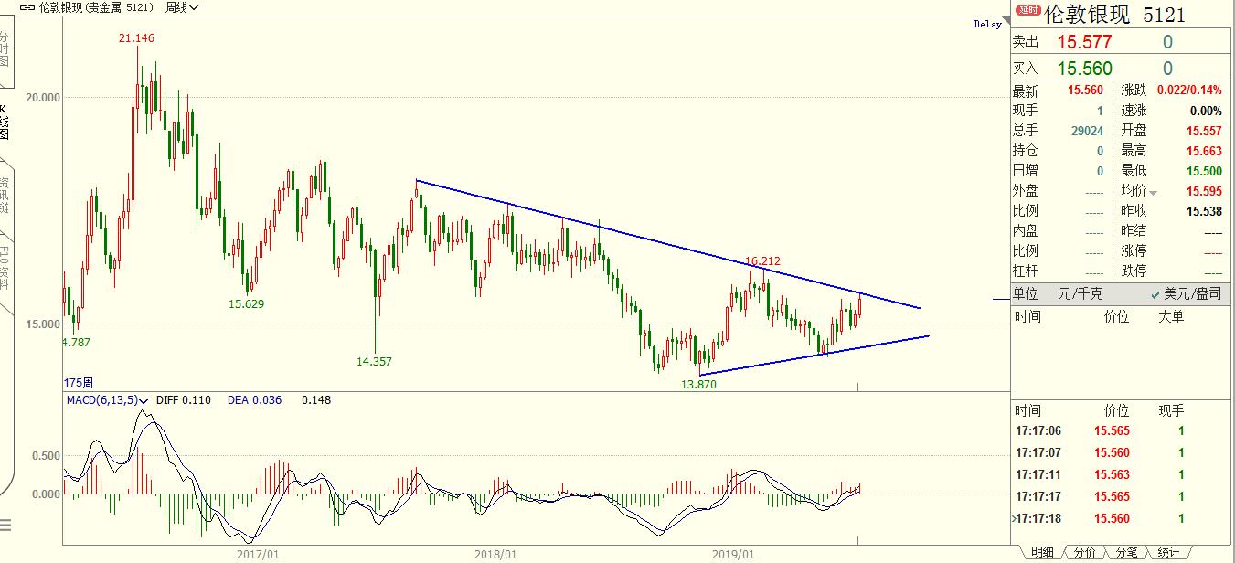 这两天一直在思考为什么银涨金跌,最终也没有思考出所以然,还把自己搞的脑袋大了,今天突然想到去年12月月底的时候写过一篇关于白银的点评,有兴趣的可以看看。 王爱永:1225 白银将现历史性的投资机会 在黄金面前,白银就是一个小品种,容易受资金控制表现出抽风的走势,而且月线图上,金银走的根本不是亲兄弟的路径,所以,今天我和我自己和解了,不再花精力去解释他为什么,存在及合理。 白银:周线上破,技术上白银已经表现出牛市特征。未来白银类资产的表现应该不会太差。品种上可以关注纸白银,沪银,白银类股票。纸白银可以满仓做多了,白银类股票可以用定投的方式参与