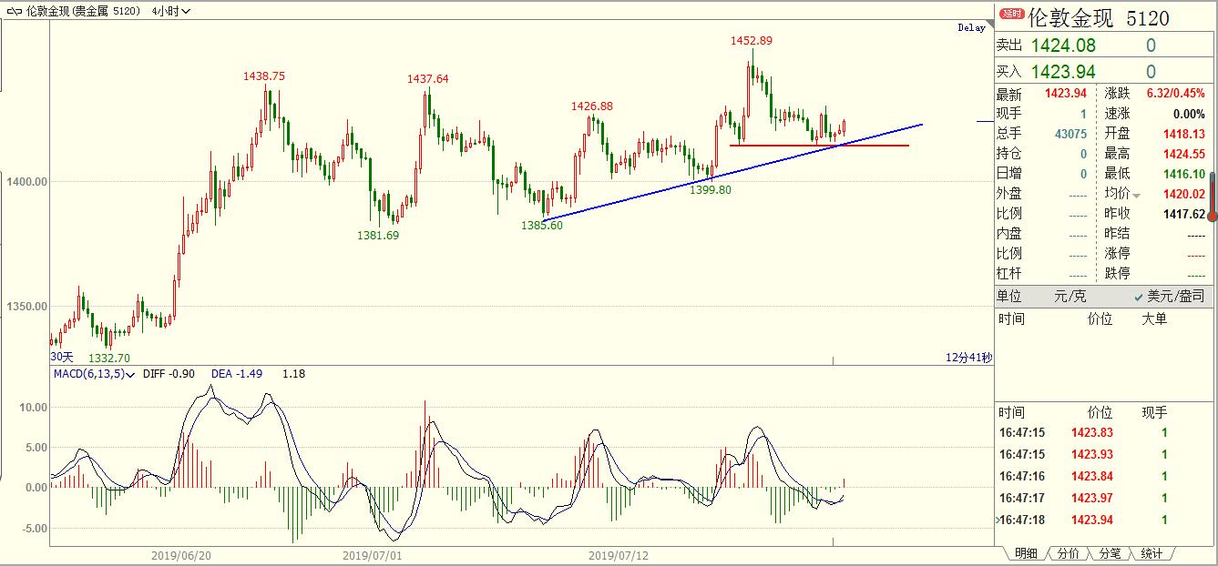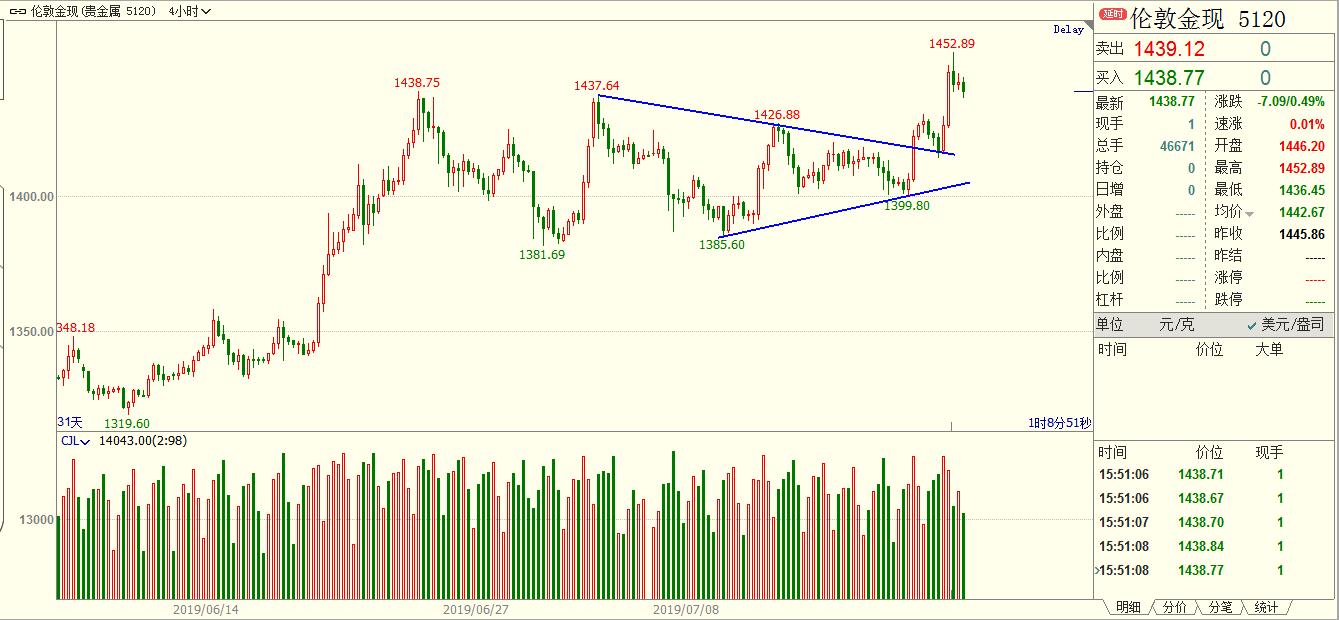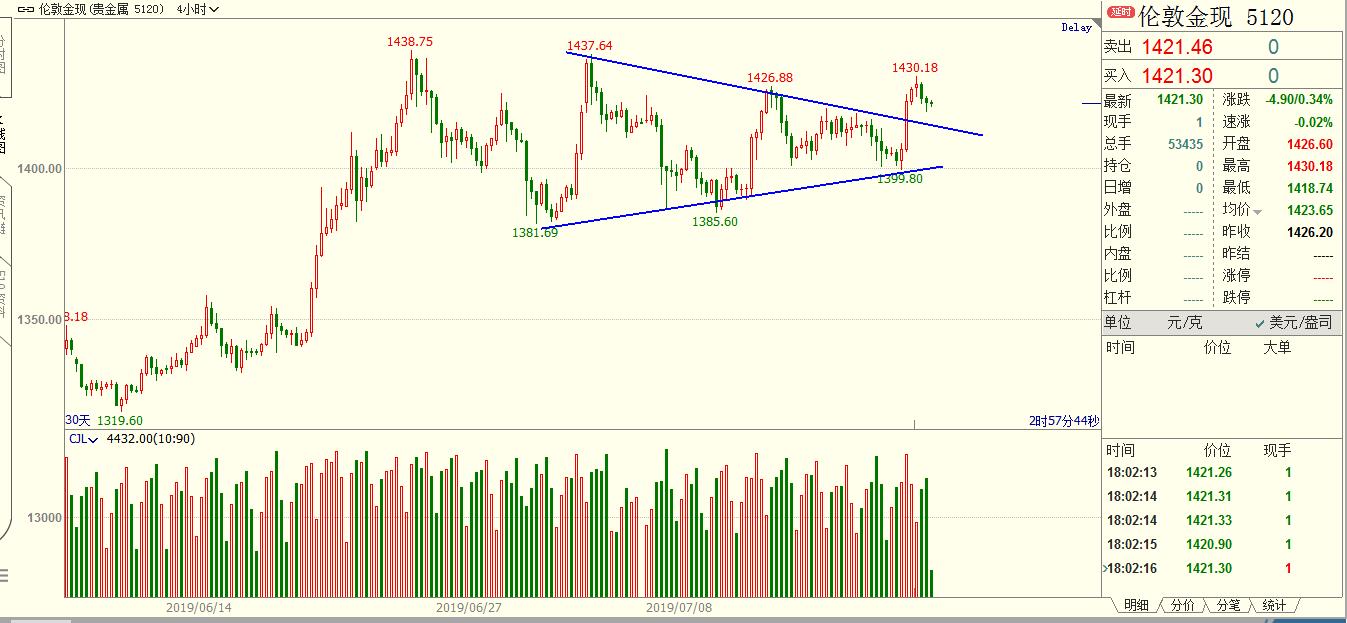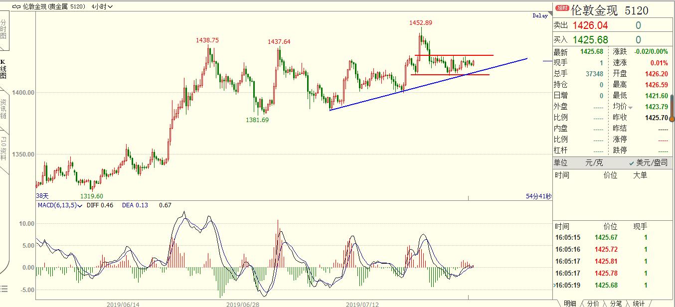 市场的主要运动方向,一定是大多数人心理上最难以承受的方向,也一定是最出乎大多数人意料的方向。市场一定会用一切方法,来证明大多数人和大多数资金投向,在大多数时候都是错误的。在负和博弈格局下,市场自身生存的前提条件之一,就是大多数投资决策的错误。 金银和汇市目前都在等待周四凌晨的美联储会议,会议之前大概率维持震荡的走势,会议之后有望出现一波单边行情,会议之后还有周五的非农数据,日央行和英央行的利率决议对市场的影响有限。本周数据扎堆,操作上一定要避免情绪化交易。中长线本周似乎没有操作的必要,建议继续等待。 周一,在英国新任首相约翰逊的强硬脱欧言论下,英镑及