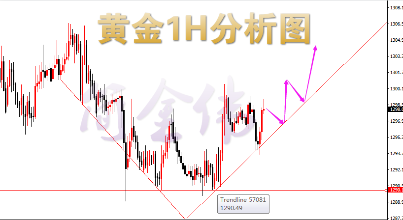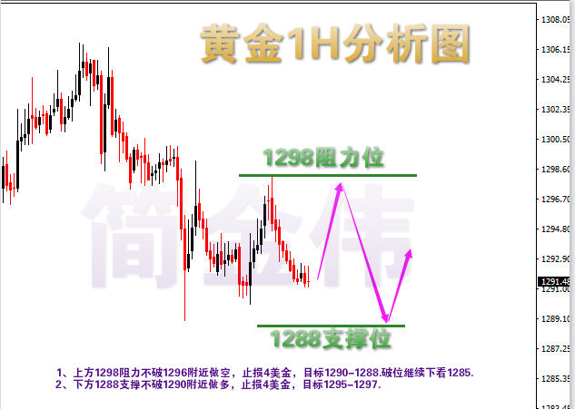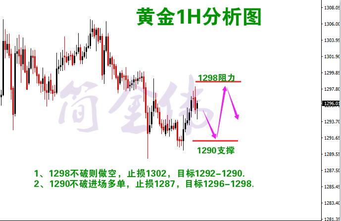 在这个市场中,最公平的就是行情。所有的投资者面对的都是一样的行情。然而,面对同样的行情,投资者必然会做出不同的选择。当行情像浪花一样一波接一波的打过来,有的人面对机会,做好准备,迎面而上,止盈获利;有的人害怕恐惧,毫无准备,反而被行情杀了个措手不及。行情对每个人都是公平的,就看你怎么面对。若你是前者,我可帮你锦上添花;若你是后者,让我助你一臂之力。 上周五非农公布,数据显示美国形势一片大好,这给黄金空头又添了一大助力,而多头方面,欧洲政局的动荡,全球贸易形势的紧张,在一定的程度上给了黄金多头上行动力,因此在日内,黄金仍旧处于上方1298和下方1290区间震荡,这也为金伟早晨