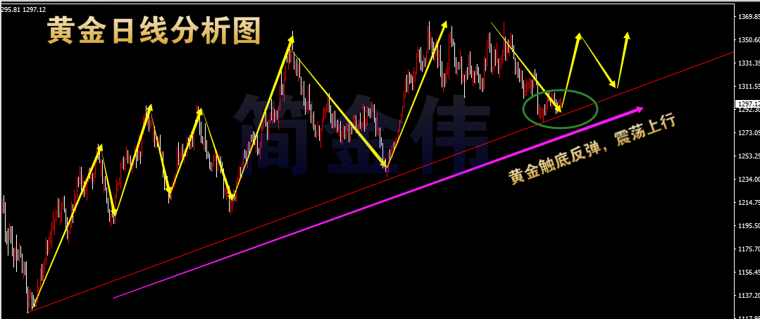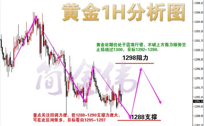 大家好,我是简金伟!做最单纯的人,走最幸福的路。我们时常会感觉心累,只是自己想得太多。我们总说生活繁琐,其实是自己不懂得品味。我们总是争强好胜,其实是自己虚荣心太强。其实,人生就那么简单,多点快乐,少点烦恼,累了就睡觉,醒了就微笑,闲了就旅游,做一个最单纯的人,走一段最幸福的路。愿你在投资的路上多一份快乐,少一份忧愁。 黄金近期回顾分析 昨日晚间黄金再次冲高1300后回落1295附近,近期消息面上面仍然还是大家关注的老问题,国.际.贸.易形式的恶化,特金会的一波三折,美元加息已箭在弦上,美指连续七周走强,欧洲局.势的稳定,尽管国际消息面在影响着市场的一举一动,但并未打压黄金上涨的势头