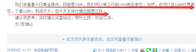 昨日,受美国纪念日休市影响,市场清淡,波动很小,正如昨日早间给的1298上方空目标看1296策略所说,利润空间不大。 今日的行情,黄金早间开盘小幅度上涨,美指依然企居高位,这种状态下我们依然不建议多单。上方1302阻力,我们可以尝试在此附近布局空单,目标看1296-1295。 先前也说道,昨日美盘休市,而随着六月加息步伐