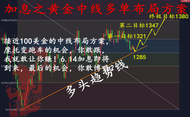 李韬展:加息强压短线黄金动弹不得!1285中线多送你摩托变跑车! 请输入描述 预想中的周五黑天鹅并没有到来,周线收官就要这么平静的渡过了,没有所谓的绝对看涨或看跌。这个市场永远是在多空双方的竞争中前行,看多的人可以找到一大堆看多的理由,看空的人可以找到一大堆看空的理由,没有绝对的对与错!韬展每天能做的就是找定自己认为的可能性比较大的方向,然后设置好止损止盈就可以了。金融市场,变换莫测,博大精深,不可能会有人只赚不亏,如果有人告诉你他有百分之百的把握盈利,那么我直接告诉你他是骗子,有赚有亏才是投资,稳赚不赔是做梦。我能为你做的就是扩大利润,控制风险,为你的资金保驾护航!更多详情可关注笔