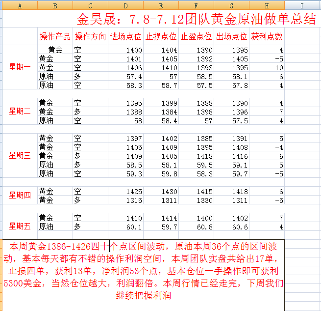金昊晟:7.15黄金1400之上持续盘整进退两难,原油站稳60一线继续看涨周一策略 忙碌一周的投资市场结束了,本周大起大落的行情确实刺激,可想而知有人欢喜有人愁。恭喜在市场上大有收获的朋友的同时,希望那些没有取得良好成果的投资者也不要灰心丧气。与其捶足顿胸不如好好反思一下自己在市场上失利的原因,只有不断找出自身的不足才能够不断进步,没有人天生就是站在高峰上,每个人都是经历了无数的挫折才能够成功,想成为一个成功的投资者也是一样的道理,反思不足,虚心学习,才能够不断进步。在投资市场并不是谁胜谁负,而是看谁能够走的更长远,只有沉浸其中才能看透这个投资市场的本质,犹豫不决和刚愎自用是投资心态最大的错
