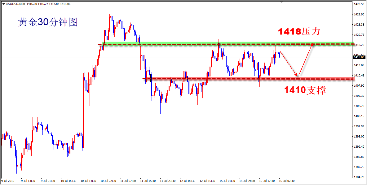 金昊晟:7.16美联储7月降息已成定局,黄金多头还将在上一层楼,原油操作建议 树挪死,人挪活,想扭转乾坤,就要先打破僵局。就比如在西藏,再努力也烧不开水,说明环境很重要!一个人再有能力,也干不过一群人,说明团队很重要!骑自行车,再努力也追不上宝马,说明平台很重要!男人女人再优秀,没另一半也生不下孩子,说明合作很重要!准确率和利润是检验实力的唯一标准!趋势投资,大道至简;盈利第一!昊晟拥有完善的投资理念,合理的交易风控系统,清晰的操作思路,明确的做单点位,及时的进出场提示,让你做单无忧,轻松盈利。 黄金操作建议 黄金30分钟级别处于1410-1418区间内横盘整理!高位盘整,横久必跌!黄金要想