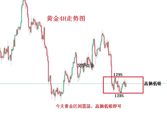 文华点金:今天策略再次获利出局,晚间金油再次策略布局 曾在一本书上看过这样一段话:千万别放弃!有了第一次放弃,你的人生就会习惯于知难而退,可是如果你克服过去,你的人生则会习惯于迎风破浪地前进。看着只是一个简单的选择,其实影响非常大,是截然不同的人生。 黄金行情技术分析: 今天小区间震荡走势,上下分走没有突破重要点位,今天早间策略文华也说过要顺势做空,到中午得我时候下跌直接到1285附近,多单也是完美的获利,目前下方1285的支撑虽然没有破位,并且还有所反弹,但是也不能看好反转,毕竟上方1295还没有破位。所以晚间操作上文华还是建议高空为主,上方主要关注1295-1298阻力,下方关注1285