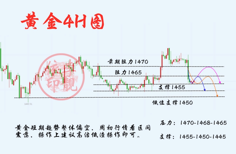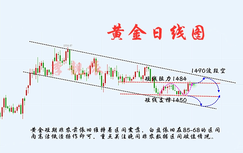 李靓依:11.12黄金多头最后一线机会,今日64下继续空看50! 投资人生,输输赢赢,或得或失!每开始一次交易,都要有两个目标:赚钱和变成更好的交易者。我们每次交易并不能百分百保证都能达到第一个目标,但必须要达到第二个目标。如果没有从交易中学到什么,你就是在浪费时间和金钱!再看今日如何操作:( 文末联系 ) 今日黄金操作建议 1、上方触及1466附近轻仓先空,见到1470附近加仓,止损1474,目标依次下看1455-1450-1440; 2、下方1450-1448区域择机短多,止损1445,目标上看1465一带即可; 日线来看:经过周三盘的小阳修正后,昨日日线再次录得一根实体大阴,价格也随之