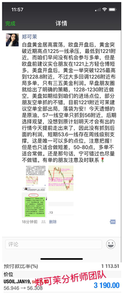 白盘黄金居高震荡,欧盘开盘后,黄金突破近期高点1225一线承压,最低到1221附近,而咱们早间没有机会参与多单,但是欧盘前建议实仓朋友在1221上方轻仓博短多,美盘开盘后,黄金一举突破1225最高到1228.8附近,不过大多回调1226附近布局多单,只有三五美金利润。早盘朋友圈就给出了明确的策略,1228-1230附近做空,美盘如期给到咱们的进场点位,部分朋友空单抓的不错,目前1221附近可茉建议空单全部出局,落袋为安! 原油确实疯狂,53.6一线周线级别支撑果然有一定作用,53.7一线多单看0.5-0.8美金,目前价格54.7美元。100点盈利到手,节奏踩的很准!原油53.7-54.0一线