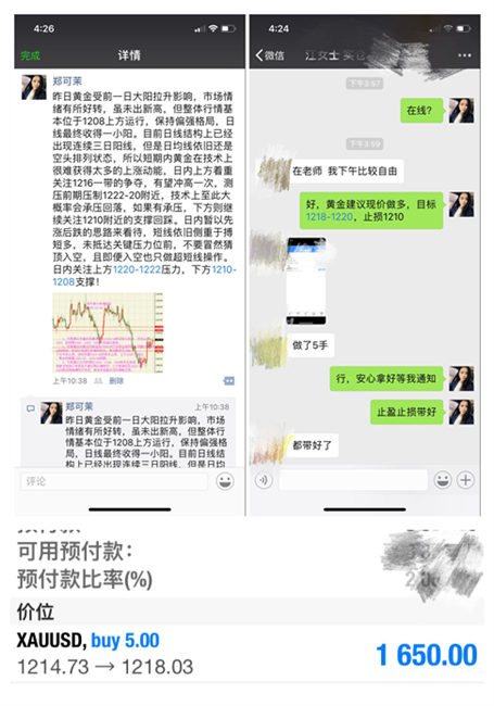 我们做投资讲就的就是顺势而为,有时候方向反了要及时调整思路,改变策略,而不是拿着扛着。不带止损,重仓操作更是一种错误的操作方式,我们都知道我们做投资在看重利润的时候伴随着风险,所以我们要做好风险控制,只有把风险控制到最小,才能博取更大的利润。 前面可茉讲到趋势的问题,既然是趋势,自然就要跟随趋势做单了。早间朋友圈博文都是看多做多的趋势,欧盘前咱们在1214一线布局的多单,目标上看1218/1220,欧盘开盘后咱们1218止盈位已到,实仓朋友稳健已经获利4美金出局,这就是跟随趋势! 晚间黄金行情分析: 日内黄金持续居高震荡,虽有回弹,但上方至1218一线便再回修,而回修空间也不是很大,整体围绕