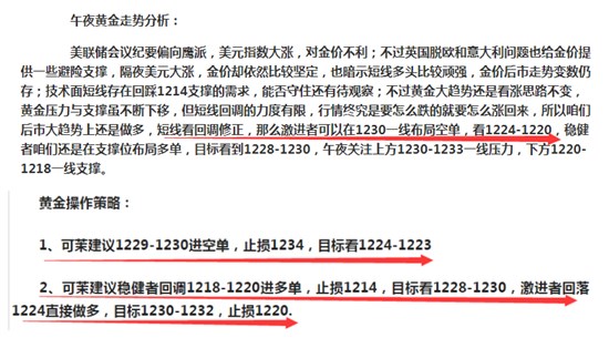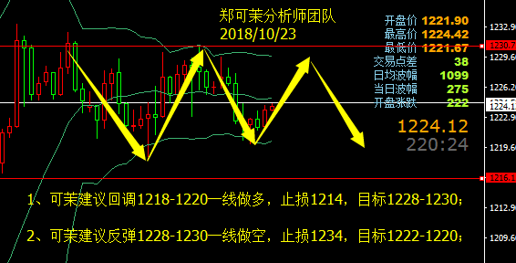 前言:顺势轻漂漂、逆势乱糟糟,跟上单单赚,错过把把亏,多少英雄在找顶的路上,多少枭雄扛单牺牲,这就是市场,一个最讲规矩,最不懂人情的地方,顺势的行情做起来不纠结,趋势,这是所有人经常谈到的话题,顺势,这是所有人嘴里念叨的词语,可是,多大的行情,多久的单边算趋势,怎么样的交易才是顺势,这才是需要反思和思考的问题,价格不断的上涨,把做多叫做追单,把做空叫做顺势,这是投资常犯的一个误区!即使别人不理解你的苦,别人不尊重你的痛,只要你尊重过市场的规则! 黄金做单回顾: 黄金早间开盘行情于1223一线开始焦灼的窄幅震荡状态,随后行情到达欧盘前夕,行情出现回落之势,由1222跌至今日最低点1218一线,