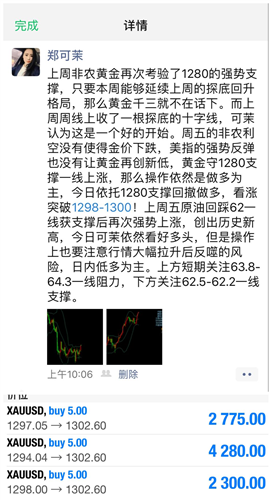 黄金行情分析: 周一黄金单边震荡上行,最高冲高至1303.6附近承压,目前交投于千三关口,关注可茉的朋友都知道,早间可茉在朋友圈更新的策略以1280为支撑看涨至千三,行情如期顺应多头,咱们在1294-97-98附近去布局的多头,晚间都有所收获,恭喜跟上操作的朋友。晚间黄金继续低多去布局,重点关注上方1305-1308的阻力,空单亦可在此去布局。下方关注1296-1293的支撑。 黄金操作策略: 1、可茉建议下方回调至1296-93附近做多,目标看到1302-1305,止损1290 2、可茉建议上方反弹至1305-08附近做空,目标看到1298-1295,止损1310 原油行情分析: 由于欧佩