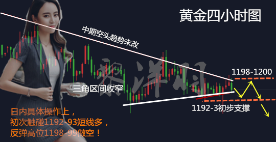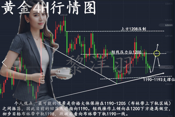 黎洋羽:美指深跌黄金一飞冲天,冲破1208仅一步之遥 赠君一法决狐疑,不用钻龟与祝蓍,我是黎洋羽,大家好。今天一大早,就有一些投资的朋友问我,黄金会涨到哪里?1208压力会破吗?手上的1202的空单怎么办?以前或许我会预测个点位给你,但是现在清晰的形态结构支持下。洋羽明确的告诉他,多头冲破1208压力仅一步之遥,在手的空单赶紧处理! 我写这篇文章,也是为市场上的投资者明确一下接下来的思路,因为在操作中也许我们同样会经历太多的不如意,太多的希望变失望,但成长的阶梯和岁月的轮回,只是滚滚向前,沉淀过去的故事,进入一个全新的开端。很多人都说喜欢看洋羽的文章,因为行情分析的简单明了,观点思路洋羽指导