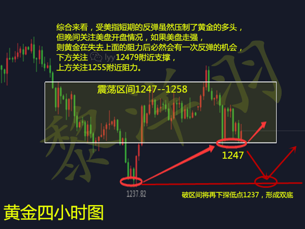 黎洋羽:黄金二次探底抄底进行时,中线方案出炉助你一力 交易中经常存在一个误区,过于纠结点位和进场,很多时候对错不差那么一点,而错也只能是表明趋势的研判存在问题,而并不是位置。 ====黄金反弹修正,今日还看高空 今晚,全球市场将迎来本周最后一个重要事件——美联储货币政策报告。近表现强势,若报告措辞较为鹰派,有助于推动美元进一步走强,而近期走势艰难的黄金面临继续下跌的风险。早上从开盘到现在,黄金的行情并无明显的延续多头反弹,我认为这样的行情很难上去,而目前也是维持在1246附近震荡,所以短期来看黄金正在选择方向,无明确的方向走势。 从技术面来看,日线图小阳线收盘,对于短线的行情来说,只能说是修