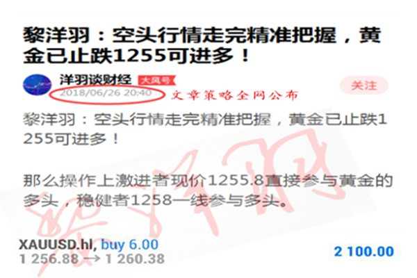 黎洋羽:反弹利润已成功捕获,今日黄金交易首选空头 洋羽寄语-- 投资不是一夜暴富,而是一朝一夕慢慢的积累的。亏亏赚赚才是行情,盈亏就像坐过山车,有高峰,也有低谷,这意味着,无论眼下是好是坏,都只是暂时的。各位投资朋友们,周三早上好,赠君一法决狐疑,不用钻龟与祝蓍,我是黎洋羽,但愿人长久。 精准抓取反弹利润,市场认知要准确! 当洋羽昨晚美盘在文章中公开阐述行情即将迎来反弹的想法后,马上就有人来指责,说现在都破位1255了,还敢做多啊?别在这里误导人,而我依旧顶着压力明确我个人的观点,听与不听做与不做终究是你自己执行。小震荡行情中黄金的振幅基本在10美金左右,很多人就是因为认知不清楚,导致了追涨
