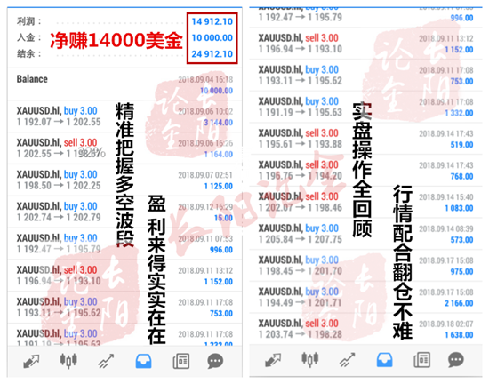 长阳论金:10.11黄金1194多空分水岭,亚盘可短空一次 大家好,赠君一法决狐疑,不用钻龟与祝蓍,我是长阳论金。投资是长期与短期的平衡,也是自己与市场间的平衡,还是预期与现实的平衡。从微观一点讲,投资亦是数据与感知的平衡,是绝对和相对的平衡。当然,投资还是多头与空头的平衡,是风险与收、益的平衡,更是坚守与放弃之间的平衡。投资是一门平衡的艺术,懂得了权衡与取舍,才算成熟,才不为固执所累。 如果你在这个市场没赚到钱,那一定是你没跟对人,如果你在这个市场没赚到大钱,那一定是你跟老师的风格不对路!马后炮指导薇/鑫:crlj2012不是我的风格,真金不怕火炼,真正的实力需要来体验。只有双方达到信任才