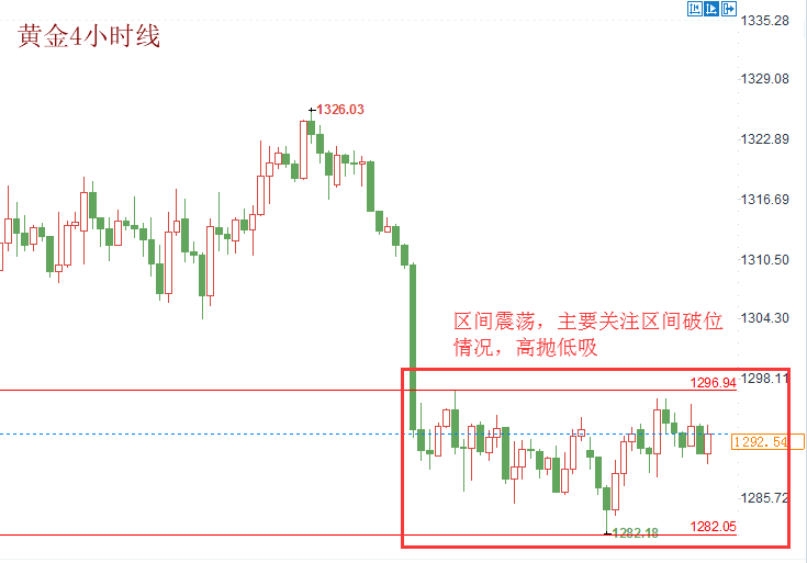 黄金目前行情已经跌破了1285附近的支撑位置,目前最低到达了1282附近,从整体上来看,杨柏枫前期反复预期1280会到达,现在也已经基本实现,跌破1285后,黄金预期会进一步的下行,最近几个交易日一直是震荡的走势,黄金多次反攻,最终还是未能到达1298-1302的区域,这点比较遗憾,反而是出现了直接下跌,笔者始终在强调黄金大