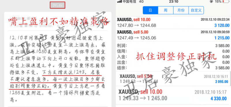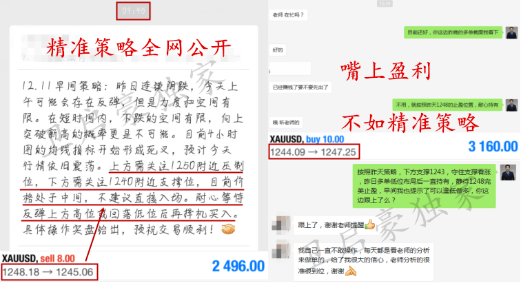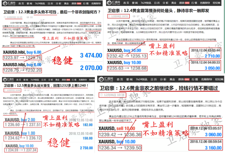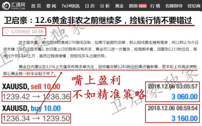 我说不出来为什么你跟我做,但我知道,卫启豪就是你不跟别人做最好的理由。 作为投资人,一定要让自己变得专业,只有对金融市场专业了,才能清楚的认识市场。 什么样的策略叫精准?不仅趋势判断准确,点位也要拿捏到不超过1个点的误差!启豪策略每天早间准时推送,文章全网同步实时地更新,同时对待实仓客户也是一对一现价喊单,策略准不准,行情来验证!实力行不行,合作论输赢!启豪不是神,不能每一波行情每一天都做到百分百精准,但是启豪的喊单准确率居高不下,这就是事实!投资是一个长久的过程,启豪寻求的也是能够长期合作的朋友,短线做波段,长线策百点,稳健操作,持久盈利,是启豪始终如一坚持的目标和原则! 启豪每一次的建仓