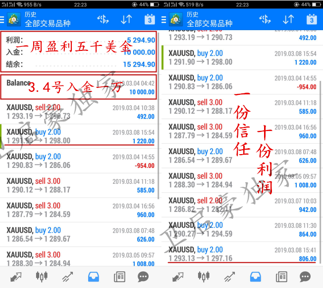 投资交易无非积累,不论积累财富,还是积累经验,或者说积累技术知识,不同的阶段总会收获自己需要的,而偏偏一些投资者喜欢急功近利,听信谗言黄金赚钱很快,就盲目进入市场,还没开始就幻想着能收益多少多少,殊不知风险投资,收益与风险共存,当你盲目时,当你迷茫时,当你匮乏技术、匮乏知识难以盈利时,请放下浮躁的心,多复盘,多积累经验,做一个聪明务实的交易者。(文末见联系方式) 作为投资人,一定要让自己变得专业,只有对金融市场专业了,才能清楚的认识市场。 周五非农,启豪这边实仓客户3.4号入金1W美金,用了五天的时间,完美抓获一半的利润,并非是激进型一单获利大几千利润,而是运用小仓位来进行操作,稳健而行,每