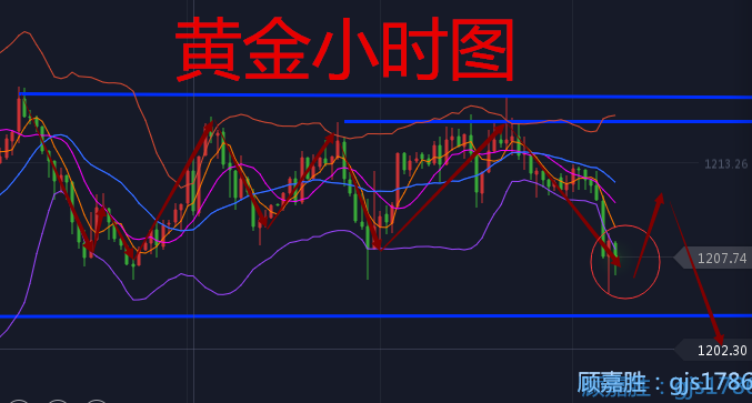昨夜的行情有点妖,不少走对方向的或是没有参与的朋友安然入睡,也有被套住的朋友难以入眠,或许现在还在寻找解套方法。嘉胜想说的是不管盈利或是亏损,不要难过,市场波动起伏总有一段是你看不清的,也总有一段是属于你的,顺势而为即可。 大多数投资者在不了解行情、死扛单和锁单的情况下发生严重的亏损,遇事着急,看到任何的起起落落都不想放过,总是不断的建仓,不断的出手,失去了自已的套路。 黄金解套: 黄金昨日打破了前面三次测试不破的1204一线支撑,嘉胜相信在1200关口附近抄底的朋友不少,就不说太多揭你们伤疤了。当下行情破位1200关口后急跌至1190附近,日内连刷新低,短期