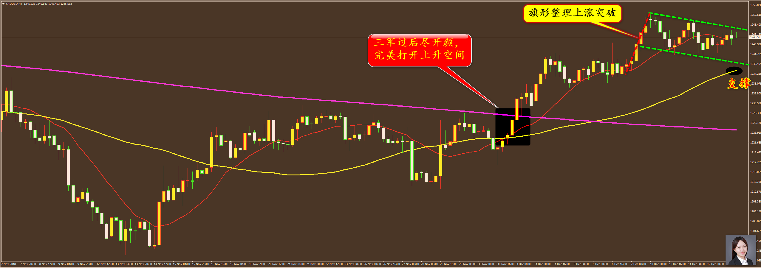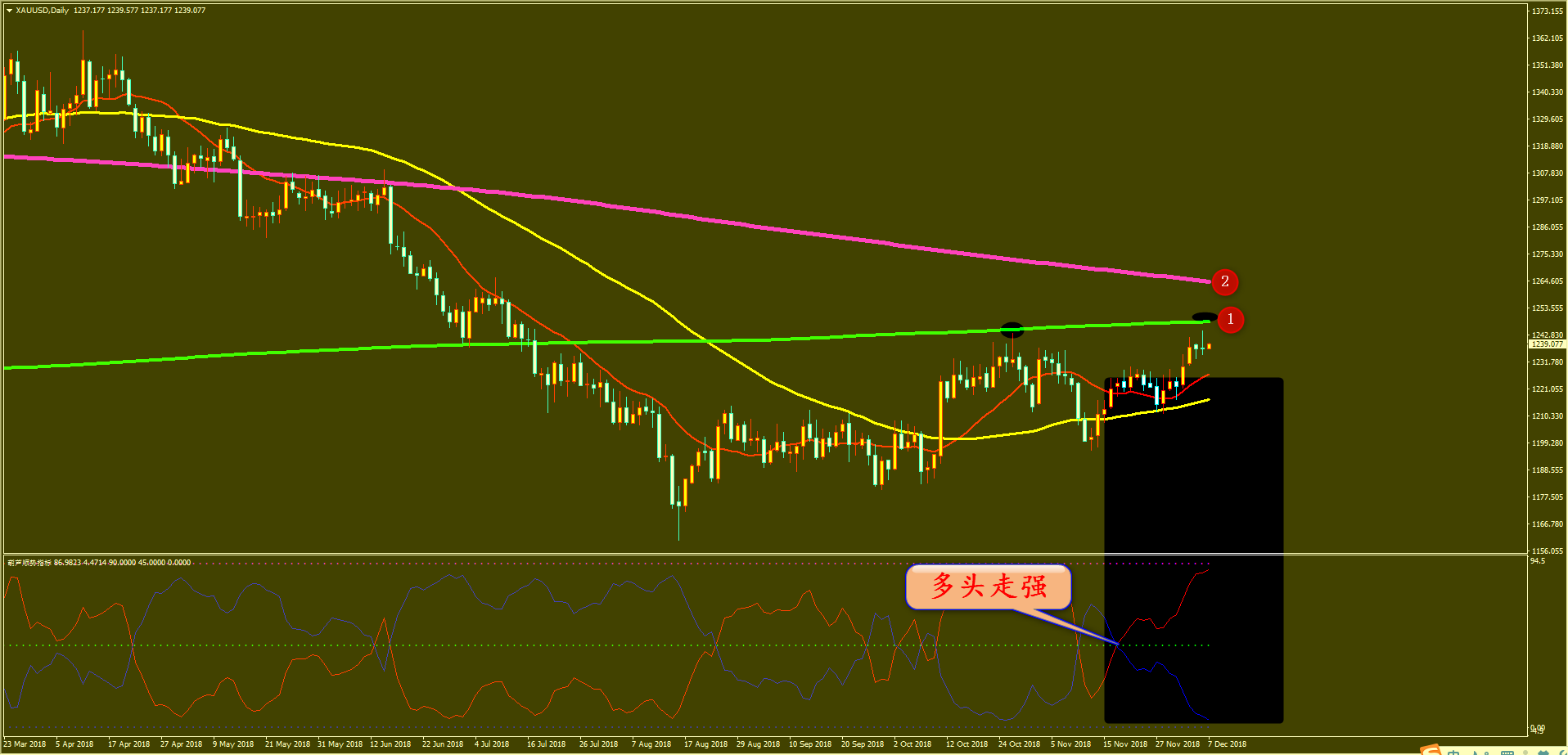 家人们好,上周五月线收官,我们家的成绩单也是非常喜人, 11 月我们黄金累计获利 124 美金,原油 25.2 美金,港股 3605 点,外汇 1807 点,铜 9.18 美金,白银 0.64 美金。成绩单虽然好看,但是外汇上面真的让我头大,有一段时间是怎么做怎么损,好在单子后面减少了,最后还有 1800 多点的利润也是拖了上半个月的福。 黄金原油这块不必多说,黄金上个月仅有两天亏损,原油更是只有一天,本月还将是 2018 年的年度收官战,所以年时段的行情可能会比此前的 11 个月都要大,那么我还将以黄金、原油为主进行分析,外汇、港股 兼顾, 其他金属附带,争取打个漂亮仗,家人们也能过个好年