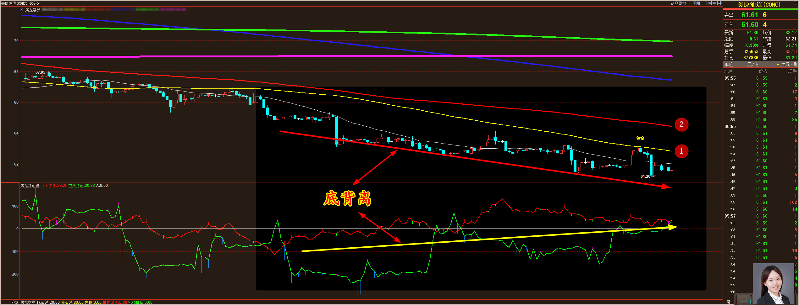 家人们大家好,昨天我们家黄金有两个多单在手,有些朋友都慌了,但是我并不在意,因为我知道它今天一定能涨上去,原油昨天把上周五的一些空单获利了结掉后,累计获利 2.51 美金,外汇我们近期做得不多,昨天 76 点的收益其实是很一般的。其实因为黄金、原油都有单子在手上,昨天我的重点就放在港股恒指上面,最终 504 点利润也是很可观的。 今天来说,黄金的震荡回落行情基本维持,但我已经发现了有机构增仓抄底的信号,所以黄金理想的走势还是一个震荡上行走势,总之我们跟着庄家、跟着大盘走,出错的概率肯定是要偏低的。 通过对黄金 4 小时图解析得知,昨日行情跟我们预期一样震荡回落,在下发得到了趋势线的支