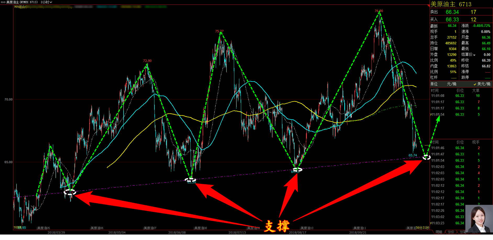 家人们好,昨天我们原油的几个空单出来后盈利 5.12 美金,其实有些还是比我预期的要少一点,黄金昨日的两个多单持有今日看来是有危险,外汇方面,美日、欧日的两个空单持有,今日估计是要损一个,但是大家放心,这种不 太 理想的状态不会持续太久。 还是先看黄金,黄金目前 4 小时有筑底动作,日内我们逢低做多,从 4 小时图解析得知,我们清楚地看到下方已经开始筑底,金价放量突破启动位,目前处在上升趋势线之上并且得到了强有力的支撑,我们昨天晚间已经成功抄底介入,并且已经告知家人在下方已经发现机构抄底增仓信号,目前顶底已经开始逐步上移,形成上涨突破趋势,在操作上我们逢低做多思路,具体建议如下: 短期: