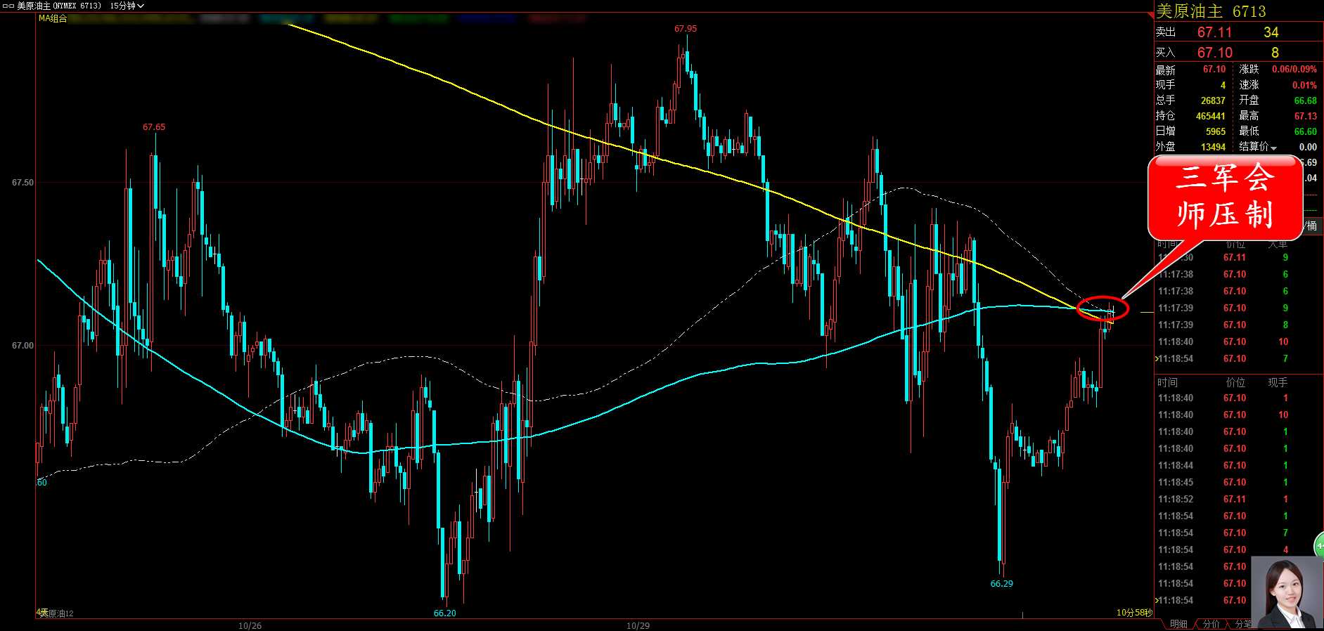 各位家人们好,我们家昨天的所有品种都取得了盈利,黄金10美金的盈利空间非常不错,并且我们还有1227.5的多单一直持有者,所以今天只要黄金不出现太大的跌势行情,我们的盈利空间还将进一步扩大。另外这里要说一句,原油我们手上还有66.3、66.2、67.4的三个空单持有中,所以原油我们暂时就少做一点,如果有家人们出来了,再向我咨询进场点位。 黄金的行情整体还是震荡走势,这也是我比较擅长的,通过对黄金4小时图解析得知,前期行情在布林带剩下轨道之间来回震荡在23号放量突破脱离震荡区间,,目前布林带已经开口向上运行受到中轨的支撑开始震荡上行(顶底上移)上涨行情已经展开,stoch在强势区运行也是要进一