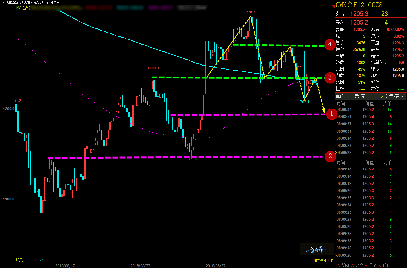 在 昨天 的 文章中我们回顾了 8 月份单子情况,也算是一个小小的月度总结,经过总结以后,我的思路也是更加清晰,昨天的单子全部大赚 ( 除港股 ) ,黄金的两次左右开弓让很多朋友都爽翻了天,原油 69 附近、止盈 70.20 的多单也是极其精准。此外,本周二 (8 月 28 日 ) 我给家人们的欧日绝技单也是继续发酵,至少 400 点的利润希望大家都能拿住。今晚,还有两项比较重要的美国经济数据公布,我们就拭目以待,看看今天家人们能赚多少吧。 黄金方面,昨晚的美国数据拉升了金价的振幅,我们通过对黄金 2 小时图解析得知近期黄金从高位形成下跌之后多头无力反攻,正如我们前期多次给家人提示过前期的反