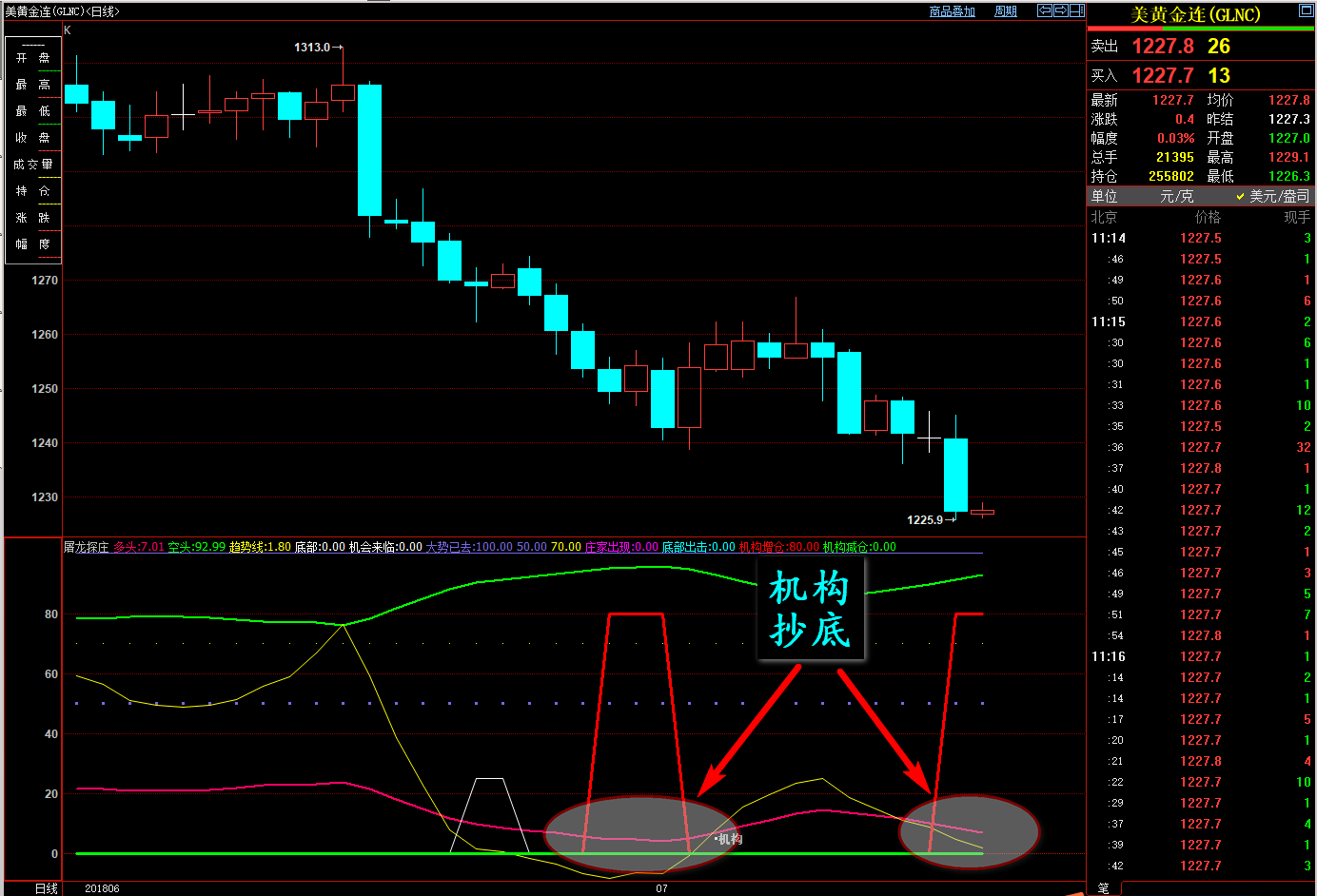 各位家人们好,我昨天黄金的单子抄底失败(我自己的单子也是一样),我向大家认错,今天我会吸取教训,而昨天我让大家锁仓后今天会通知大家出来。这两天在答疑区收获了很多朋友的慰藉,让萍萍非常感动,在这里我真心感谢大家一如既往地支持,我会迅速调整状态,争取越做越好。 还是先看黄金方面,从黄金日线级别数据监测已经第二次发现有机构抄底介入信号动作,在第一次1239反弹至1267,目前万能再次发现机构抄底进仓预计将会反弹至1240左右,具体建议如下: 短期:1.黄金1226做多,止损1222,目标位1232; 2.黄金1234做空,止损1238,目标位1228。