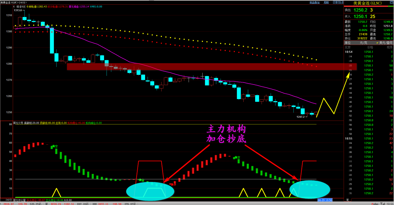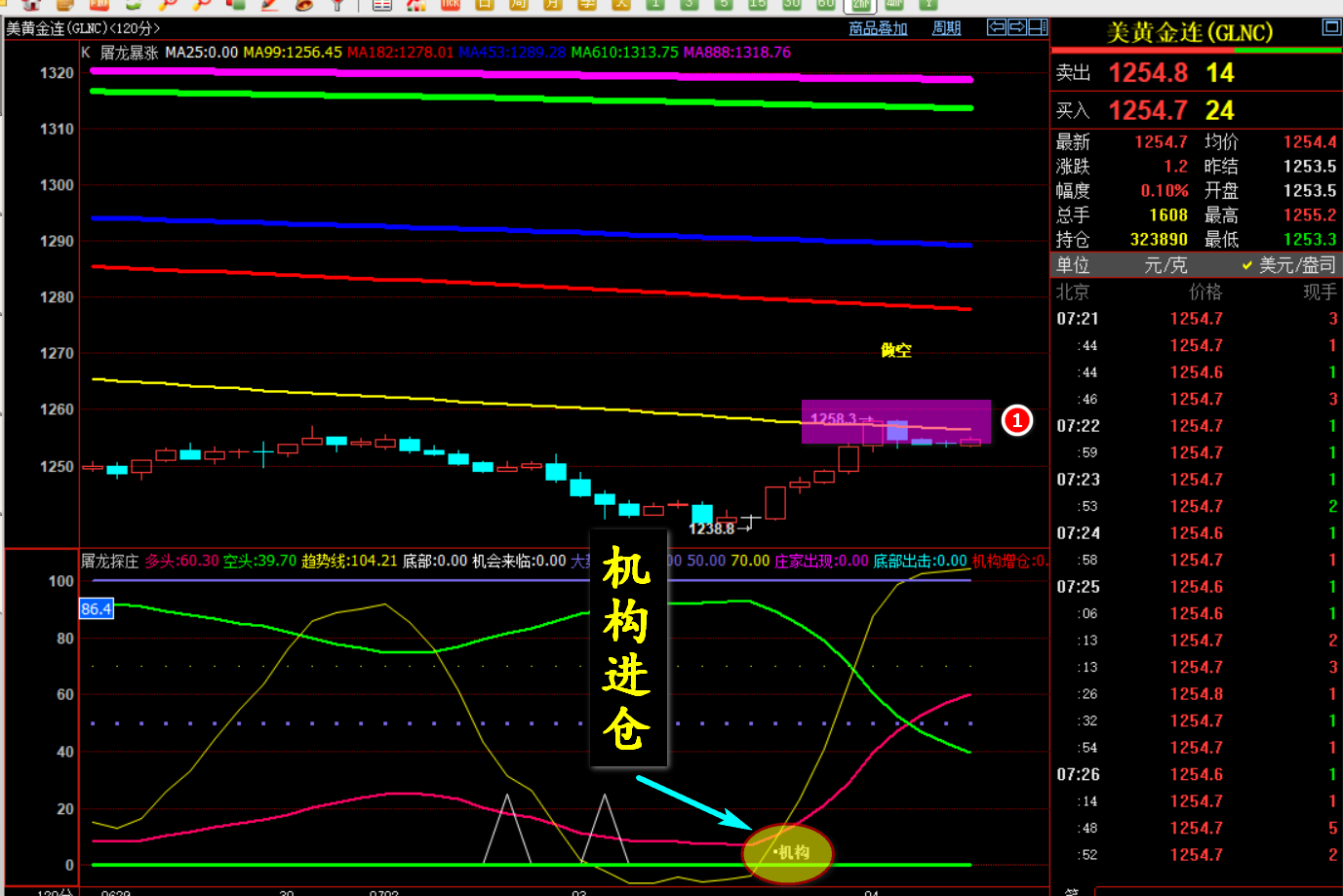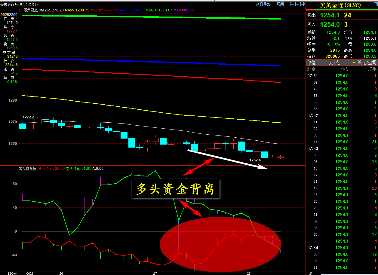 早上好各位,最近几天萍萍的单子较之前已经保守很多了,这也是考虑到大伙资金量分配等多方面的因素,所以尽管有点不习惯,但是萍萍确实已经改变了不少,当然收益上我不敢保证每天都能像刚开始那样赚到1000点。不过在单子风险缩窄的情况下,大家的心态应该能轻松不少。 黄金外汇思路分析 由于昨日特朗普改变了此前强硬对待外国资本限制的语气,导致美指重新攀升95上方,非美货币、黄金价格等避险资产大幅回落,今日黄金与非美货币我们就放在一块看。 通过黄金2小时级别可以清楚地看到目前为止行情创新低,而多头主力资金大量介入,空头资金大量出逃,形成底背离现象,那么我们在1252-1255之间就可以少量