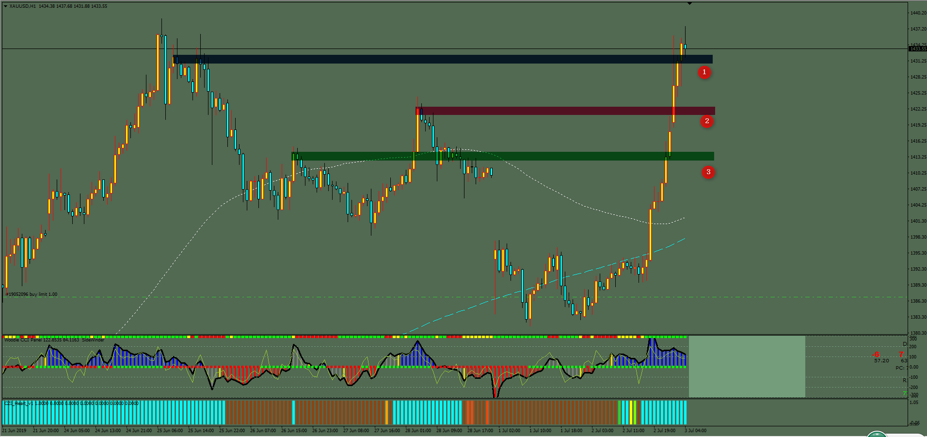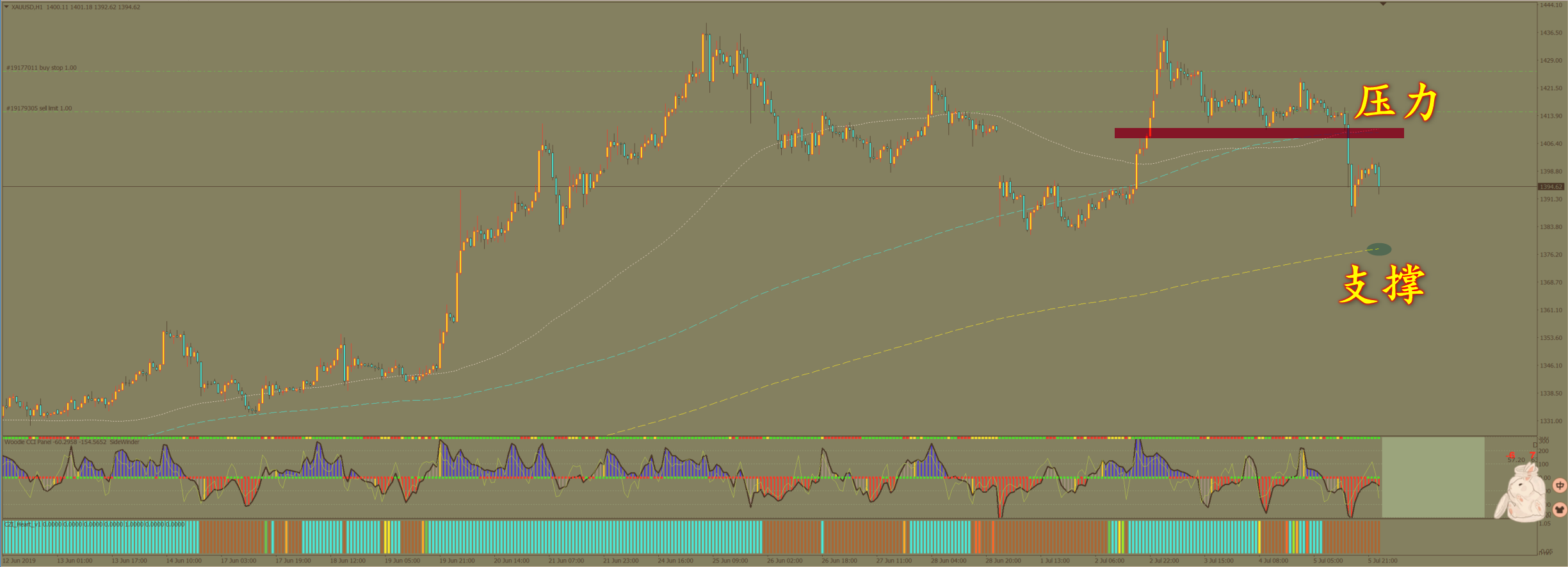 各位家人们好,很遗憾,上周的非农走向没有预判正确,以至于我前日苦心布局的中长线多单机会也被迫保本损,虽然当天有盈利 13美金,但中长线布局的被扫有伤士气,很不开心。今天黄金的短空在早上被损,当然这是突发行情导致,因为伊核问题有了进展,并且美国已有了对伊打击的意图,黄金涨势暂难下去。 不过若是从技术角度来看,我真的是很少犯错的,当然上周的恒指损了四单,也真是自打我入驻汇通后的首次。其他如外汇、原油都是保持正常盈利。今天恒指已经盈利出局,原油的利润正在扩大,黄金一会有新的策略,大伙儿等我通知。 黄金策略分析 通过对黄金小时图解析得知,在上一个交易日非农数据前一直受到下方均线支撑,晚间数据利空