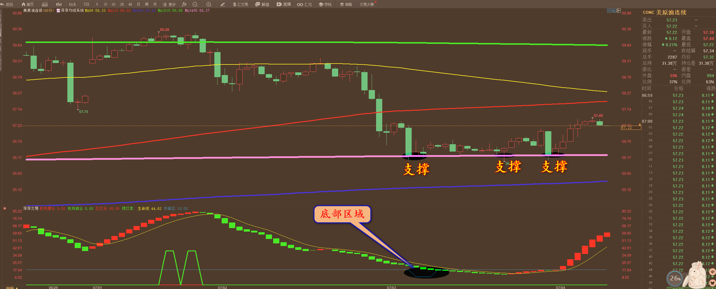 家人们好,昨天的所有品种一一盈利,这里不再累赘。今天美国独立日,纽约证券交易所在今天凌晨就已休市,美国其他交易所也会逐步提前休市,目前黄金原油都有爆拉迹象,我们等待价格回落后的进仓时机。切记,黄金能布局中长线的机会可能只在今天有,大家耐心等待我短信通知。 黄金现最佳建仓时机 通过对黄金 2小时图解析得知,近期行情冲击1439的位置震荡回落以来在前一个交易日从底部区域我们发现机构抄底介入信号以来,突破整理区间昨日到达前高压力冲高回落,目前已经到达昨日的放量突破位,得到了强有力的支撑反弹上涨。 今日非常有可能继续震荡调整,为放量突破做准备工作,目前基本上已经定型上涨,下跌空间微乎其微,最佳的